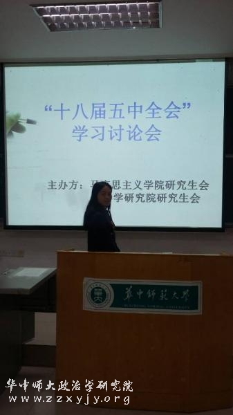 11月3日下午,由政治学研究院研究生会和马克思主义学院研究生会主办的“十八届五中全会”在华中师范大学1号楼1101教室成功召开。