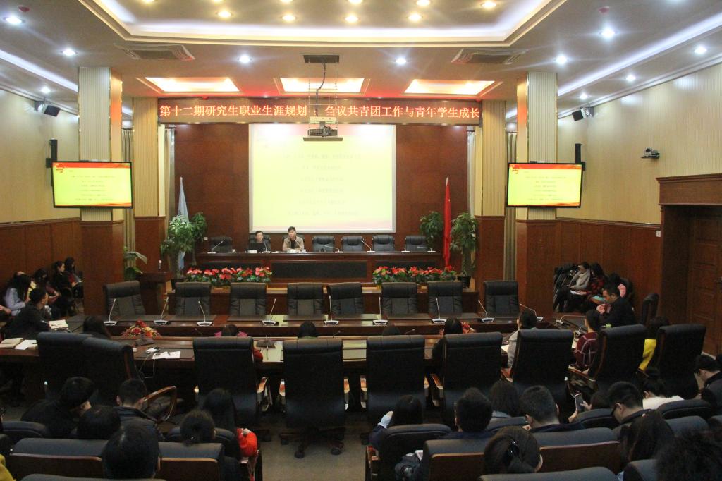 (通讯员 李梦兰)3月15日下午,政治学研究院第十二期研究生职业生涯规划讲座在我校模拟联合国会议室成功举办。本次会议主题是“刍议共青团工作与青年学生成长”,邀请到华中师范大学校团委杨臣书记担任主讲人,我院博士生导师、校青工委副书记陈荣卓教授担任主持人,全院100多名同学参会并聆听此次讲座。