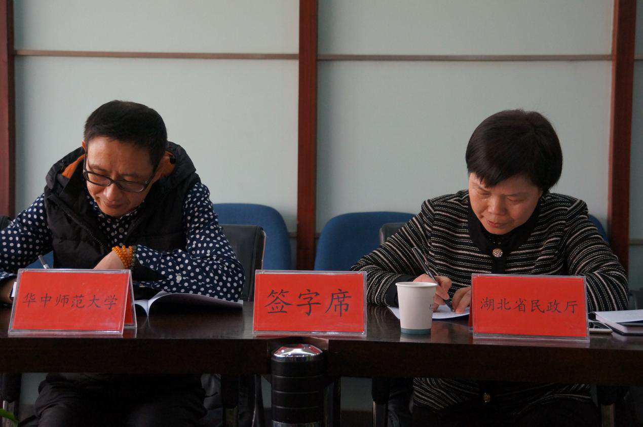 3月24日上午,省民政厅与华中师范大学湖北城市社区建设研究中心2016年度课题项目合作协议签字仪式在武昌举行。厅党组成员、副厅长叶景丽,华中师范大学政治学研究院院长唐鸣出席了签字仪式。
