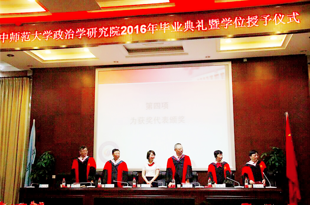 (通讯员 潘文倩)6月18日下午,政治学研究院2016年毕业生毕业典礼暨学位授予仪式在模拟联合国实验室(老图书馆四楼)隆重举行。我院院党委书记王长华博士、我院院长唐鸣教授、副院长韦红教授、副院长胡宗山教授等领导和全院教师以及2016年全体毕业生及部分家长参加此次活动,典礼由胡宗山副院长主持。