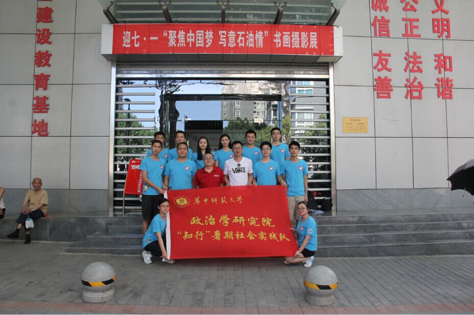 (通讯员 胡延睿) 7月5日下午两点,华中师范大学政治学研究院“知·行”暑期社会实践队一行来到陕西省西安市雁塔区红专南路社区进行实地走访调研,此次调研系团中央学习部立项支持2016年“丝路新世界•青春中国梦”暑期实践专项课题之一,调研主题为“‘一带一路’背景下基层社区建设与发展研究”。华中师范大学政治学研究院团委书记冯连军带领团队成员一行15人,在红专南路社区综合协调主任王勇江主任的带领和讲解下,实地参观了红专南路社区,并通过访谈、问卷等方式对基础设施建设、便民服务项目、居民日常事务处理、党组织建设与发展等方面进行了细致调研。