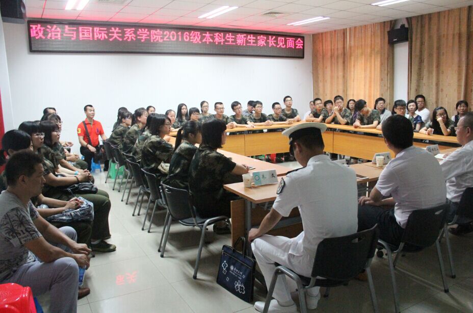 9月1日下午5点,本科生新生家长见面会暨“学长制”帮扶会在我院313教室顺利举行,见面会由我院团委书记、本科生辅导员冯连军主持,院长唐鸣、副院长胡宗山、本科生班主任钱道赓、学院办公室主任潘广炜以及军训六连连长朱文出席了见面会,与家长面对面交谈,向家长介绍学院概况,让家长和新生全方位地了解我院各专业的基本情况,并现场回答家长的提问。院长唐鸣、副院长胡宗山分别发言,对新生家长放心地把孩子交给华师交给政国院致以感谢,表示会为学生的成长、成才最大可能地提供支持和帮助。