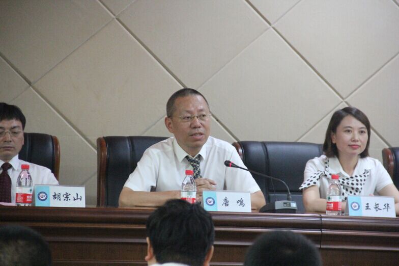 奏唱国歌后,院长、博士生导师唐鸣教授首先致辞。他引用《毛主席语录》中的“世界是你们的,也是我们的,但归根结底是你们的。你们青年人朝气蓬勃,正在兴旺时期,好像早晨八九点钟的太阳,希望就寄托在你们身上”,借此表达对新生的殷切希望和真挚祝福。同时,唐院长特别强调时间的重要性,希望同学们不忘初心,能够在华师、在政国院发光发热。
