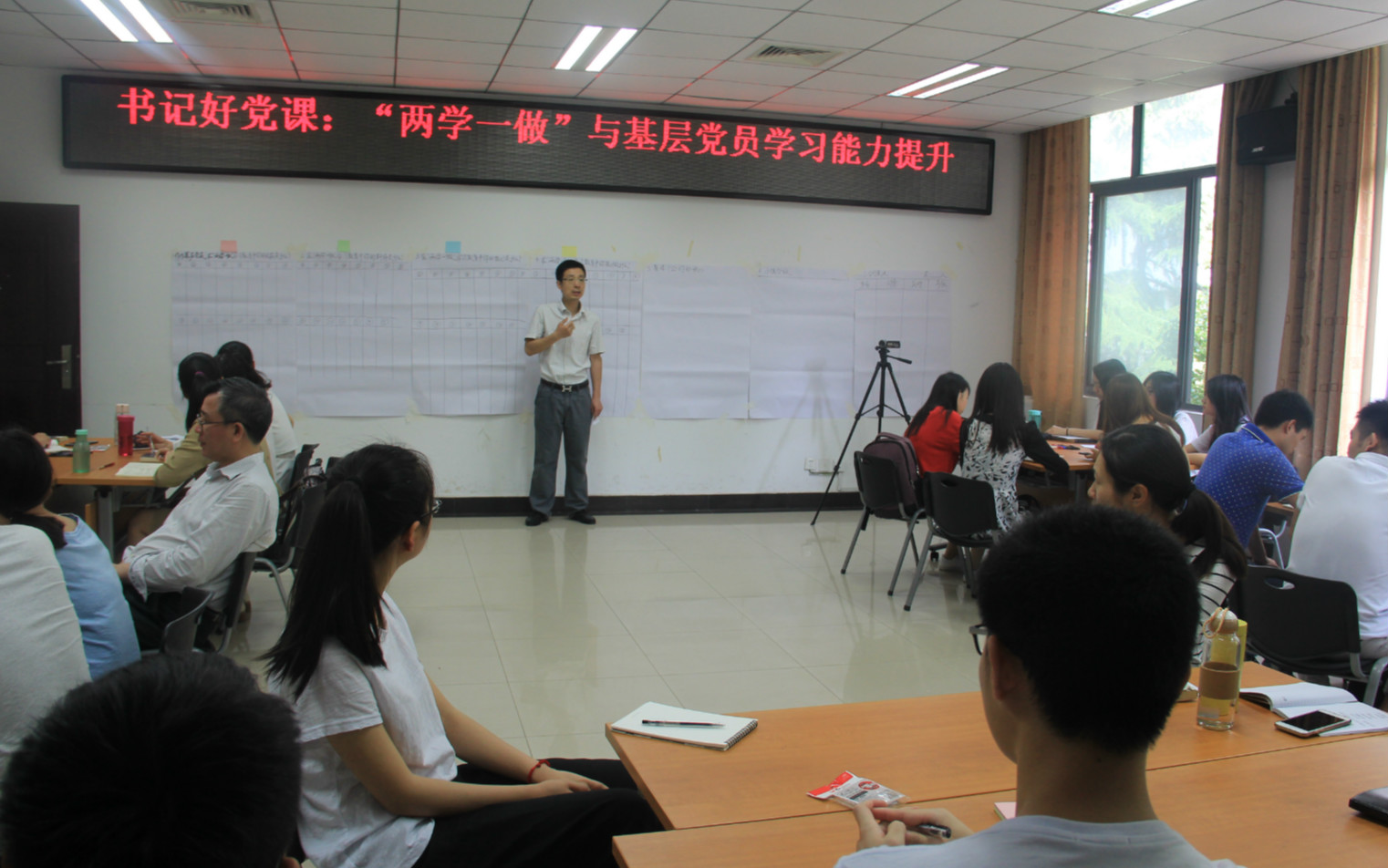 (通讯员 刘烨)在党的十九大即将召开之际,为深入学习贯彻全国高校思想政治工作会议和中共教育部党组《普通高等学校学生党建工作标准》以及我校《关于举办“支部好案例、书记好党课、党员好故事”》相关精神,全面加强党的基层组织和党员队伍建设,进一步巩固和拓展“两学一做”学习教育成果。5月16号上午9点,我院书记好党课在学院313教室开讲,党课主题为“两学一做”与基层党员学习能力提升,我院政治学研究所党支部书记袁方成教授担任主讲人,政治学研究所全体教师、全体学生党员以及部分团员参与党课学习。
