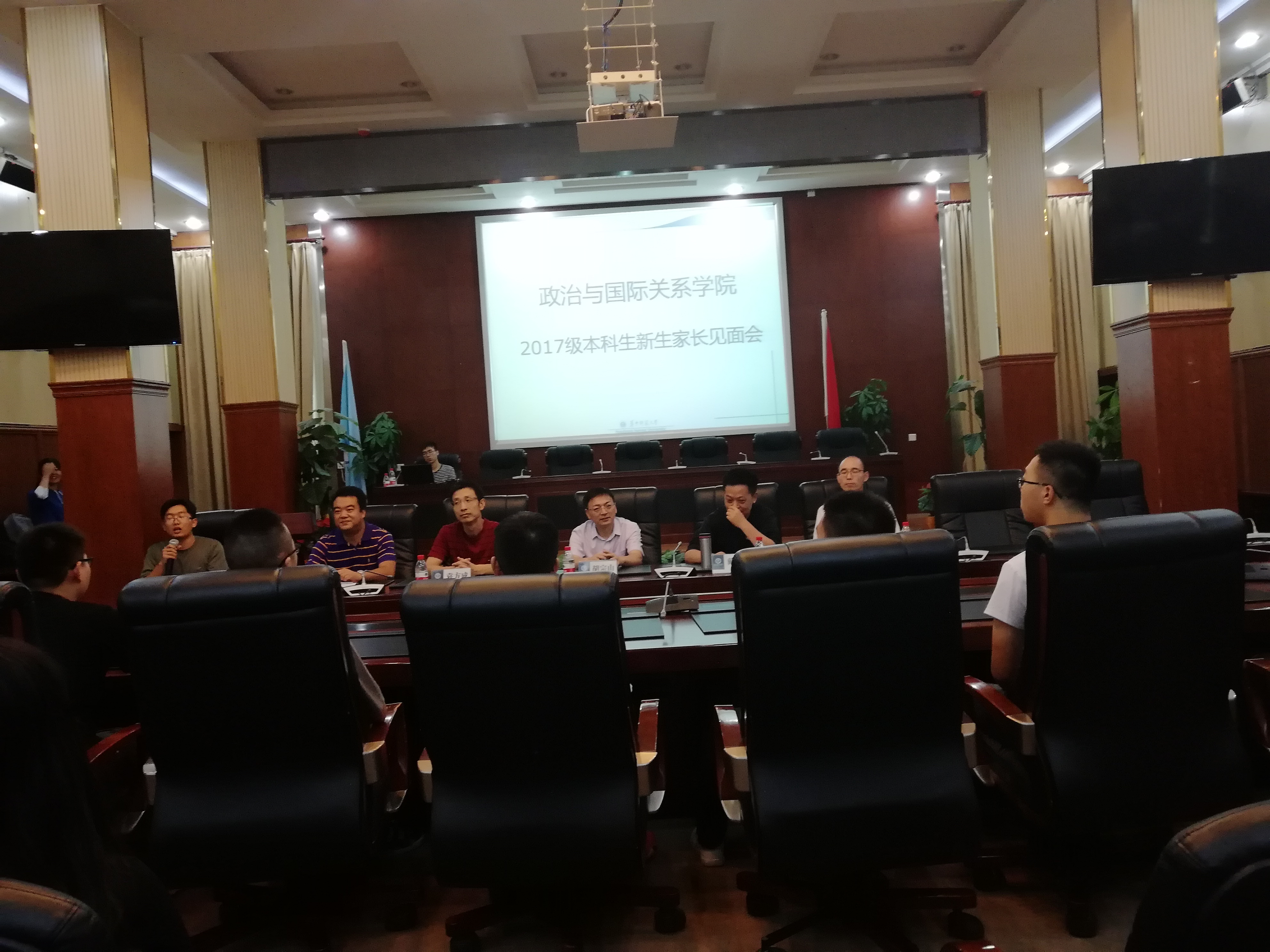 2017年9月1日,2017年新生家长见面会在文华公书林四层模拟联合国会议厅举行,会议由辅导员孙延松老师主持。