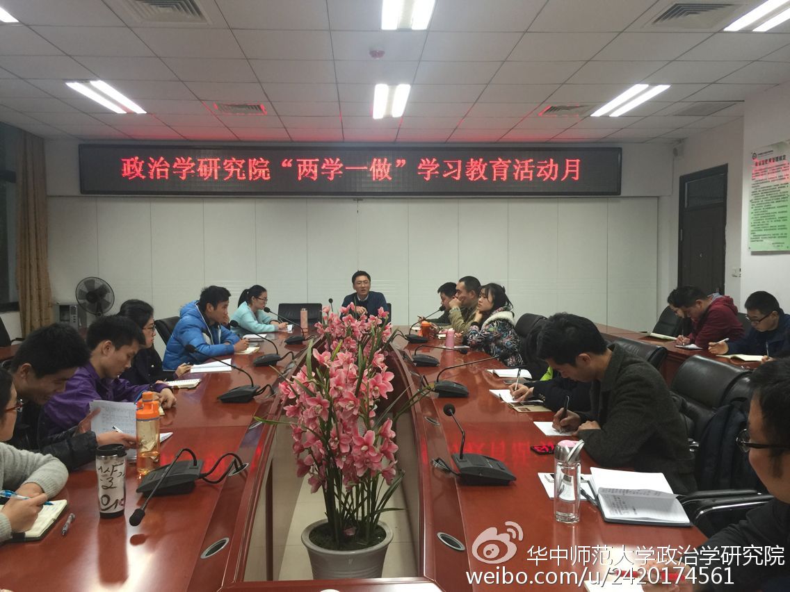 为深入学习“党章党规”和“系列讲话精神”,同时推进我院本学期各项学生工作有条不紊落实,3月2日下午,政治学研究院“两学一做”学习教育活动月筹备会议在我院309会议室顺利召开。本次会议由团委书记、硕士辅导员冯连军老师主持,我院研究生会全体成员及研一各支部书记积极参加。