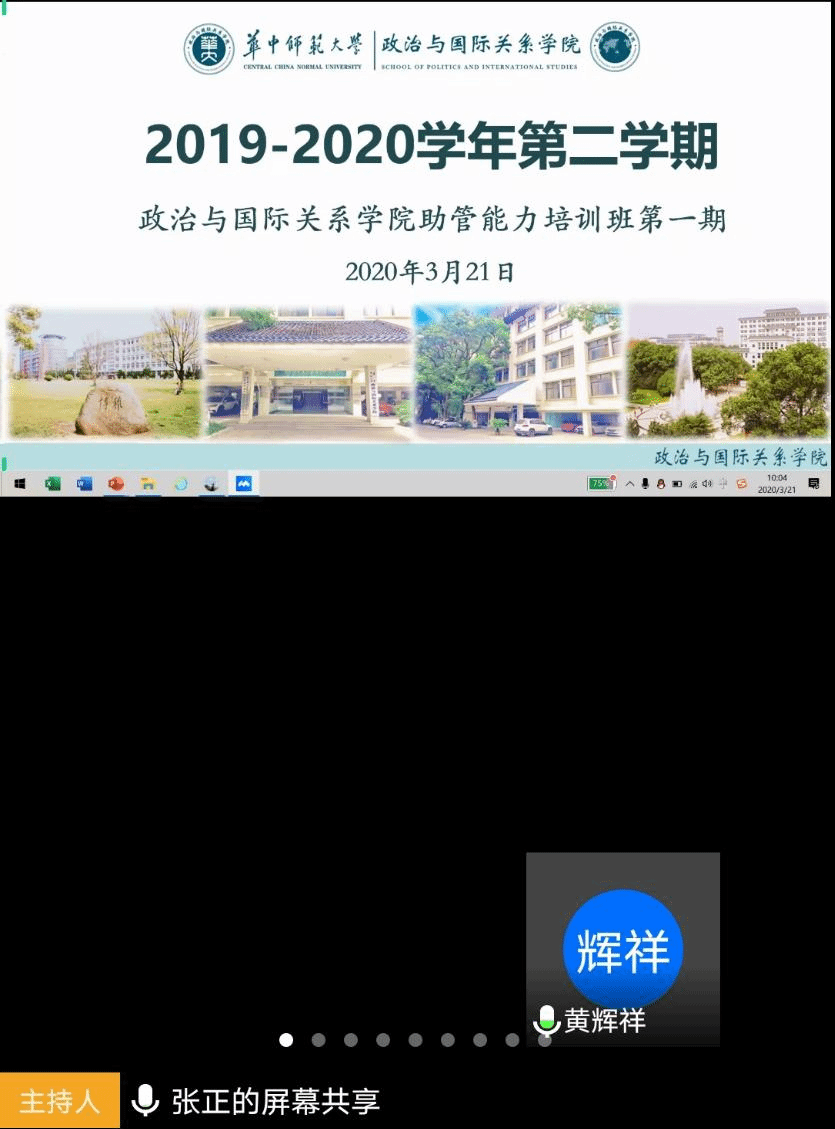 (通讯员 王雨)3月21日上午十点,政治与国际关系学院依托腾讯会议网络平台,对学院31位助管进行了本学期第一期的助管能力线上培训。本次培训旨在进一步提升学院助管在新情况下的办公效率,保证新形势下学院助管工作的完成度。院党委副书记秦恒与副院长黄辉祥受邀参与,学院全体助管学生参加,研究生辅导员张正主持本次培训。