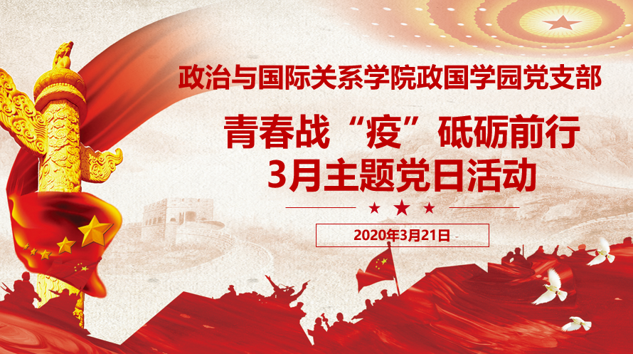 (通讯员董诗艺 唐辉)阳春三月,疫情防控的人民战争逐现新颜。为深入学习习近平总书记赴湖北省武汉市考察疫情防控工作的重要讲话精神,明确青年党员的当代责任与担当,3月21日上午,政国学园党支部成功开展了以“青年战‘疫’, 砥砺前行”为主题的党日活动。本次活动由组织委员郭志奔同志主持,政国学园全体学生党员通过腾讯会议APP进行线上参与。