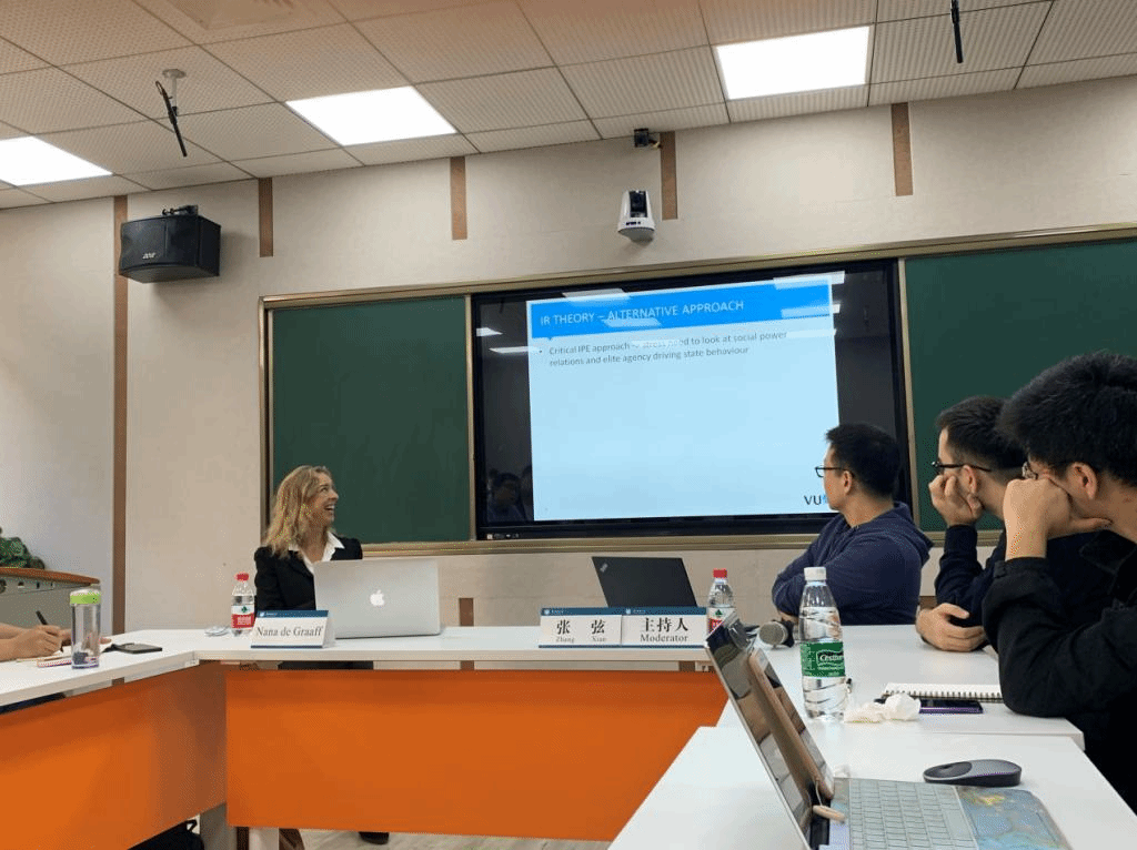 最后,Nana de Graaff教授基于现状提出对于中美未来关系的几点设想,并开展提问环节,期间老师与同学们积极互动,互相交流了关于自由世界秩序的看法,整个讲座内容丰富,脉络清晰,同学们获益匪浅。本次讲座圆满结束。