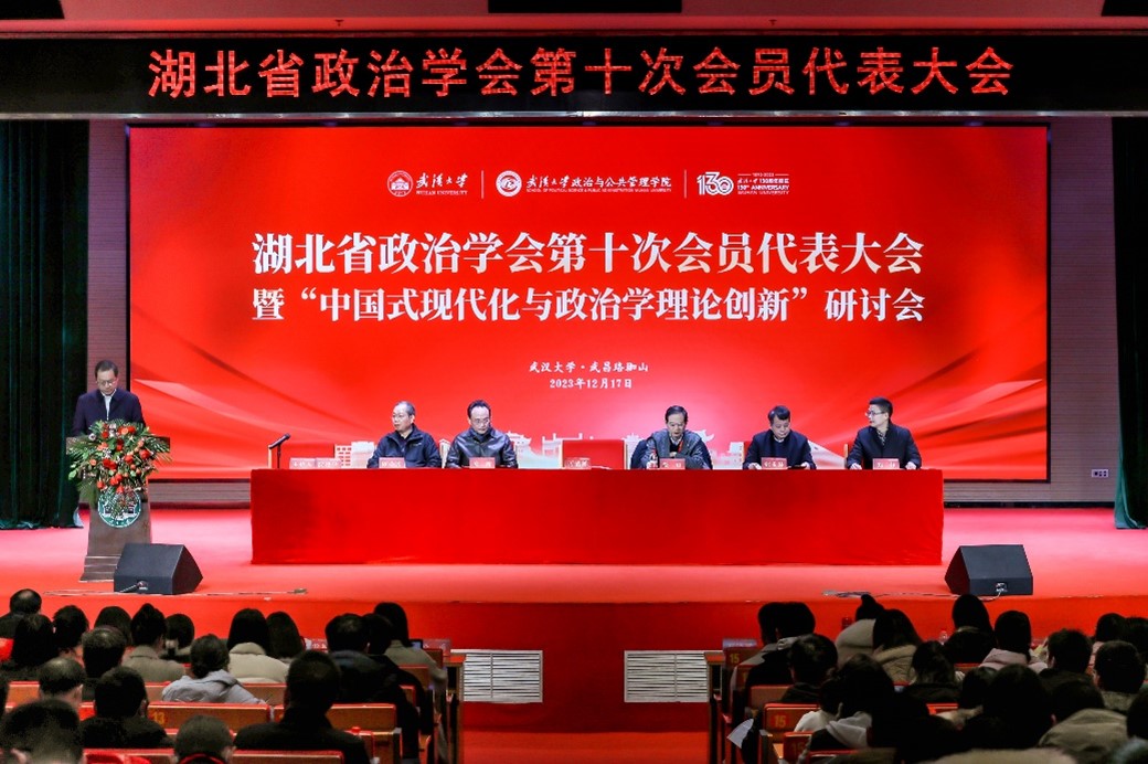 2023年12月17日,湖北省政治学会第十次会员代表大会暨“中国式现代化与政治学理论创新”研讨会在武汉大学人文馆举行。我院袁方成教授、钱道赓副教授、肖泽磊副教授、丁羽老师、望超凡老师和赵文杰老师等出席会议。