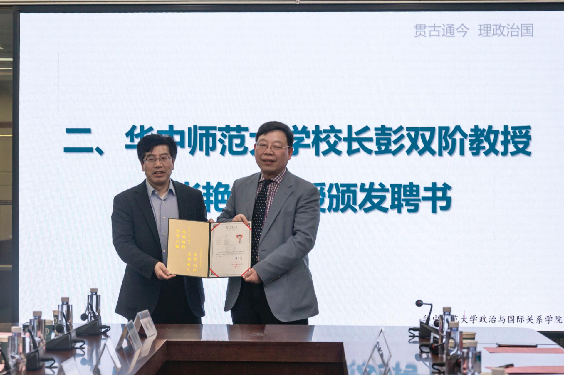 3月28日,张艳国教授聘任仪式在逸夫国际会议中心二楼会议室举行。校长彭双阶、校党委副书记陈迪明出席。相关职能部门和政治与国际关系学院负责人、师生代表参加。校党委副书记陈迪明主持仪式。