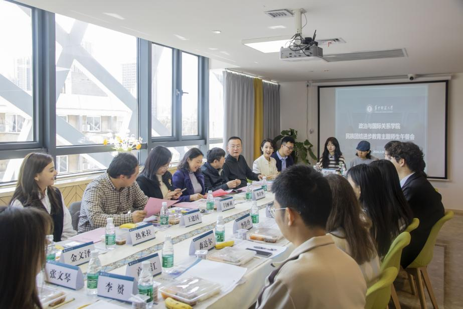 3月29日,学院民族团结进步教育主题午餐会在新大学生活动中心B栋五楼民族团结进步之家举办。校党委学生工作部领导韩君华、民族团结教育办公室主任美合日姑丽和辅导员热米拉,学院党委书记闫丽莉、院长胡宗山、党委副书记潘广炜、副院长王建国、院民族工作联络人郑泓韬以及14位民族学生代表参会,本次主题午餐会聚焦民族学生生涯规划与个性发展。活动由学院党委副书记潘广炜主持。
