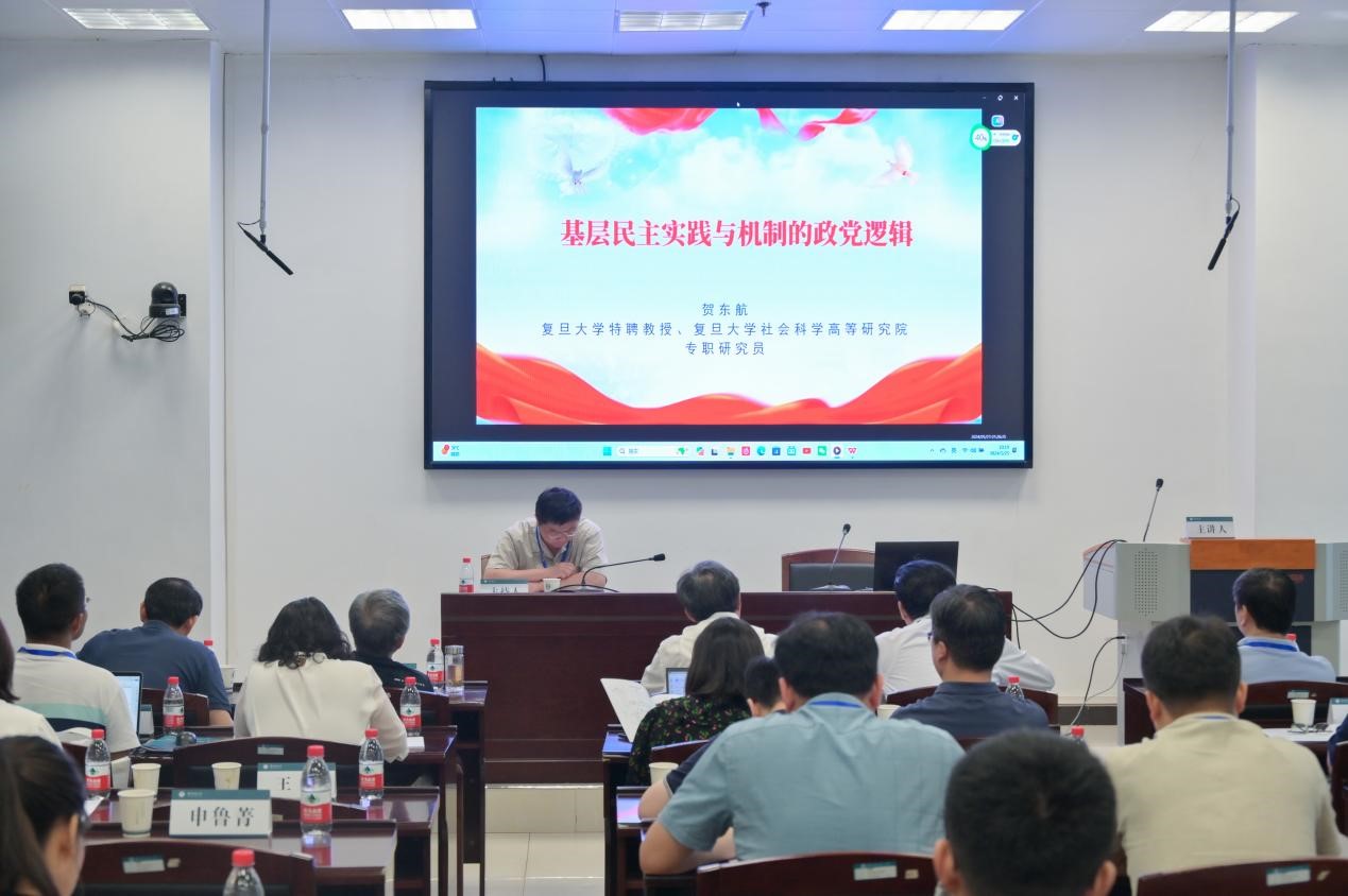 复旦大学特聘教授、复旦大学社会科学高等研究院专职研究员贺东航教授以视频形式参会,讲述了中国共产党领导下的基层民主发展历史,中国共产党领导下的基层民主机制的具体实践和效果和关于中国共产党领导下基层民主机制的主要发现。他指出,要加强对基层民主实践中党的领导的研究,列宁主义先锋党理论是中国特色社会主义基层民主的理论支撑。