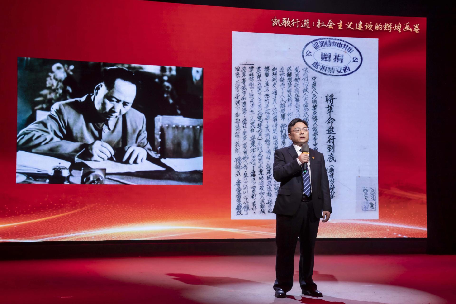 看“换了人间”,感“当惊世界殊”。胡宗山教授结合《浪淘沙·北戴河》的创作背景,讲述了“共和国立威之战”抗美援朝战争取得胜利的斗争故事,及“大破大立”开启社会主义改造的伟大征程,让那个年代如火如荼的建设场景、一往无前的奋进姿态穿越时空跃然眼前。“一桥飞架南北,天堑变通途”,通过解读第一个五年计划中武汉重大项目——长江大桥落地的实施进程与重大意义,胡教授深入浅出地讲解了《水调歌头·游泳》的历史故事,让现场观众对那段激情燃烧的岁月有了更加直观的感悟。