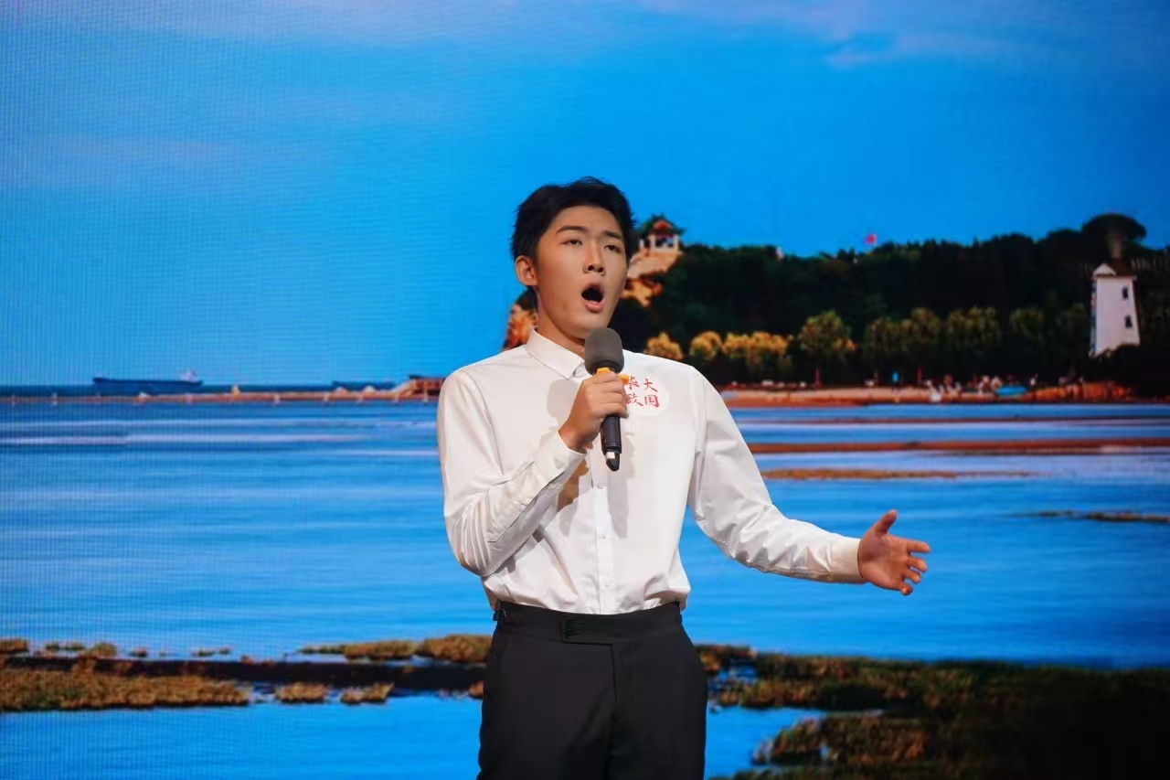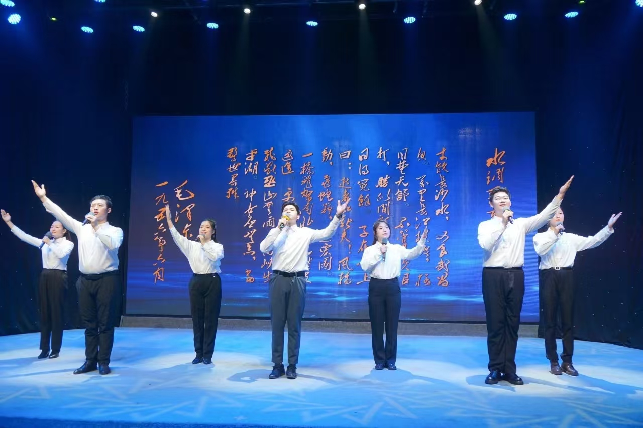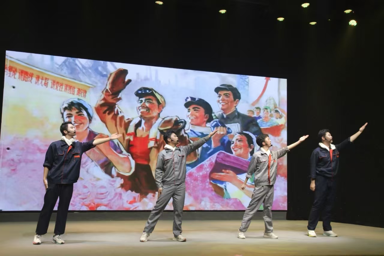诗词党课现场,政治与国际关系学院的学生们通过演唱、朗诵等多种展演形式,生动展示了共产党人铸造气象万千的信念和力量。一曲《浪淘沙·北戴河》高歌激昂,配合朗诵更显深情,与屏幕上珍贵的历史画面共叙征途;四人合唱《我们走在大路上》,以词为媒、迸发活力热情,以舞为介、宣扬奋斗精神,生动呈现社会主义建设时期人民群众的冲天热情和无限活力;七人齐诵《水调歌头·游泳》,表情意、扬志气,抒发新中国社会主义建设辉煌成就的由衷赞美。现场观看的学生纷纷表示:这一趟别开生面的党课既“接地气”也“冒热气”,先辈们为建立社会主义新中国栉风沐雨,作为新时代青年,要以“请党放心”的铮铮誓言与“强国有我”的青春力量,为新时代“中国梦”的实现增砖加瓦。