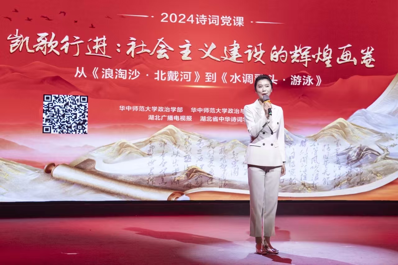 (通讯员 黄随 王晓雨)品诗词,学党史,开新篇。10月31日,政治与国际关系学院与湖北广播电视报联合主办的诗词党课“凯歌行进:社会主义建设的辉煌画卷”在华中师范大学隆重开讲,吸引了超45万人在线观看。本期诗词党课将以毛泽东诗词为舟,从《浪淘沙·北戴河》壮阔起笔,到《水调歌头·游泳》豪迈落款,穿越革命和建设的洪流,共同回望社会主义建设的光辉历程,以此献礼新中国成立75周年。