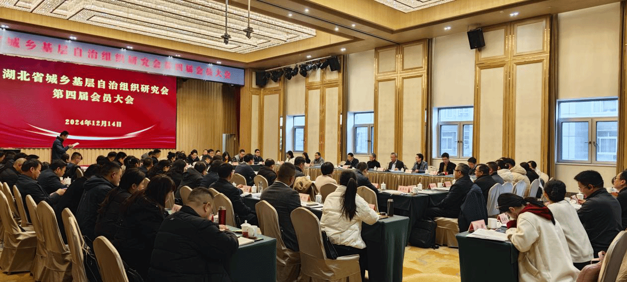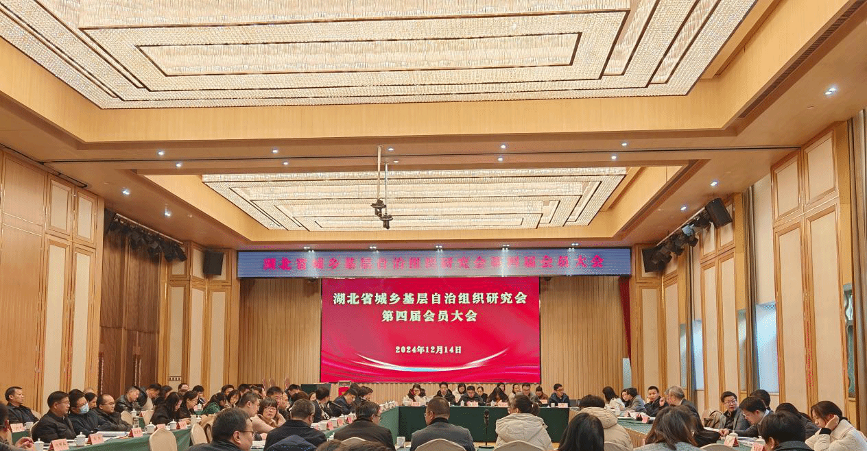 (通讯员:黄淑玲)2024年12月14日,湖北省城乡基层自治组织研究会(以下简称研究会)第四届会员大会在东湖大厦隆重召开。省委社会工作部副部长陆建义出席会议并讲话。第三届湖北省城乡基层自治组织研究会会长、华中师范大学政治与国际关系学院教授唐鸣,湖北省委社会工作部一处副处长毛婧,武汉大学政治与公共管理学院院长刘伟教授,华中师范大学政治与国际关系学院院长胡宗山教授等领导专家参加会议。