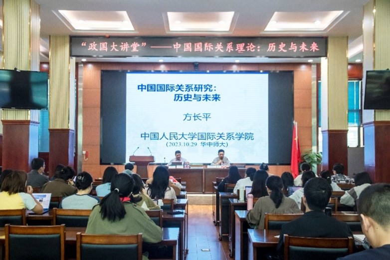 (通讯员 田雅颂)10月29日上午,由华中师范大学政治学部、华中师范大学政治与国际关系学院主办的政国大讲堂·国际关系研究学术周系列学术讲座第四讲于模拟联合国实验室顺利举办。中国人民大学国际关系学院教授、国际关系专业博士生导师方长平作了题为“中国国际关系理论:历史与未来”的学术讲座。我院国际政治专业2021、2022级硕士生、博士生以及部分本科生集中聆听。讲座由学院戴轶教授主持。