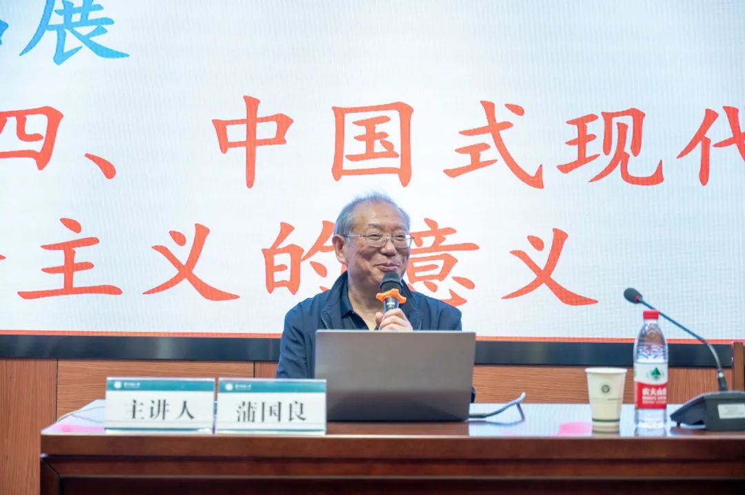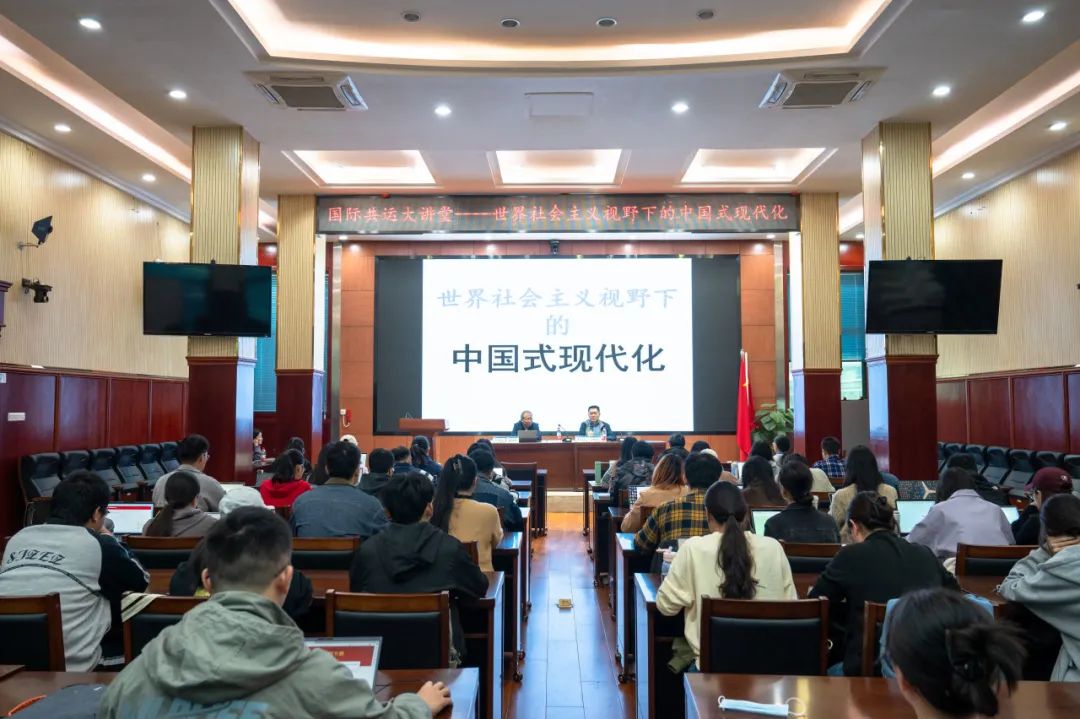 11月5日上午,由华中师范大学政治学部、华中师范大学政治与国际关系学院主办的华中师范大学国际共运大讲堂于文华公书林模拟联合国实验室顺利举办。中国人民大学国际关系学院教授、博士生导师,中国国际共运史学会副会长,中国科学社会主义学会当代世界社会主义专业委员会副会长蒲国良教授,受邀做“世界社会主义视野下的中国式现代化”的学术讲座。我院科社所全体博士生和硕士生以及部分本科生集中聆听讲座。本次讲座由学院余维海教授主持。