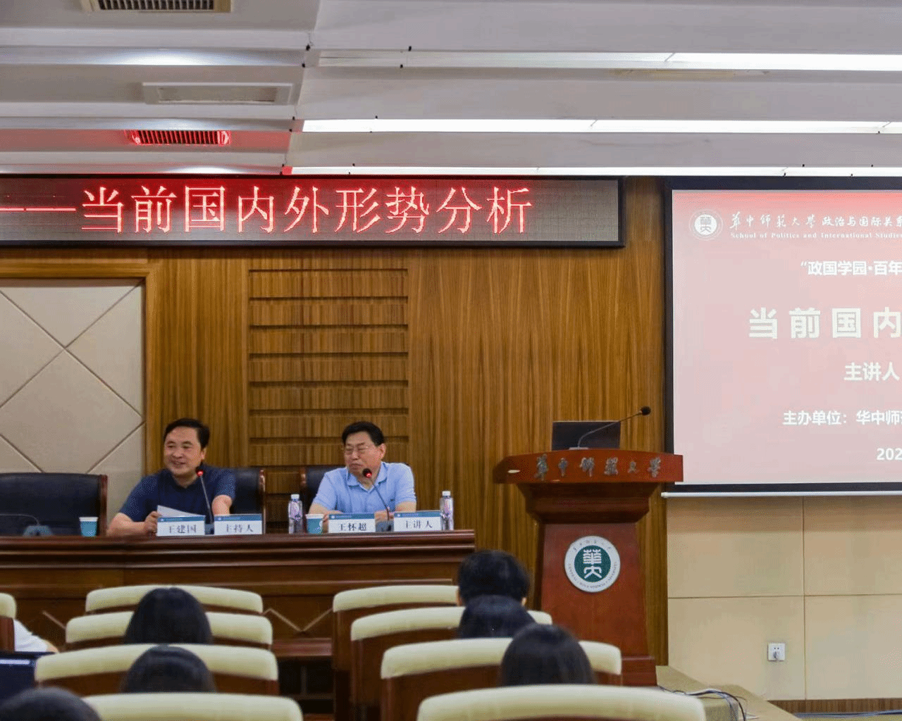 5月13日,“盛世中国”思政课暨“政国学园·百年大党”系列学术讲座第二讲在逸夫国际会议中心一楼会议室进行。第十二届全国政协委员、中国科学社会主义学会原会长、中共中央党校(国家行政学院)一级教授王怀超作了题为“当前国内外形势分析”的专题讲座。2022级、2023级科社所与国际政治系硕士生,全体科社所与国际政治系博士生参与讲座。本次讲座由副院长王建国教授主持。