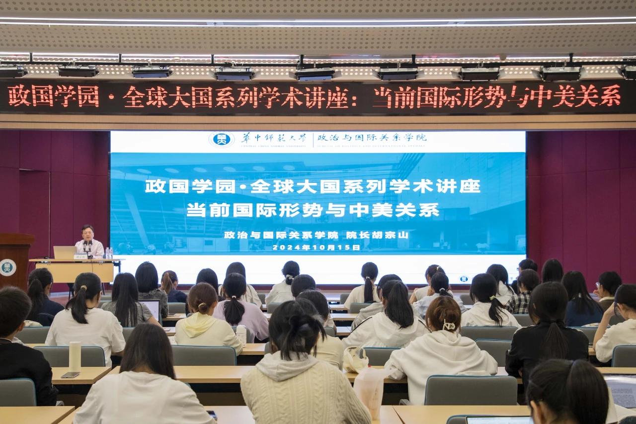 (通讯员 廖丽娟)10月15日晚,政治与国际关系学院“政国学园·全球大国”学术讲座第一讲于文科科研楼一楼学术报告厅举行。学院院长胡宗山教授作了题为《当前国际形势与中美关系》的讲座。我院国际政治系全体硕士生、博士生参与讲座。
