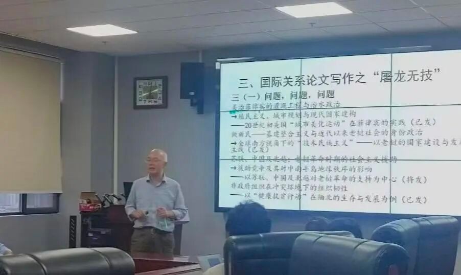 10月17日,我院“政国大讲堂”系列学术讲座于文科科研楼南楼1005会议室举行。外交学院陈志瑞教授作了题为“解构国际关系论文写作:从构思到投稿”的学术讲座。本次讲座由我院陈菲副教授主持,国际所2025级硕士生、全体博士生参加。