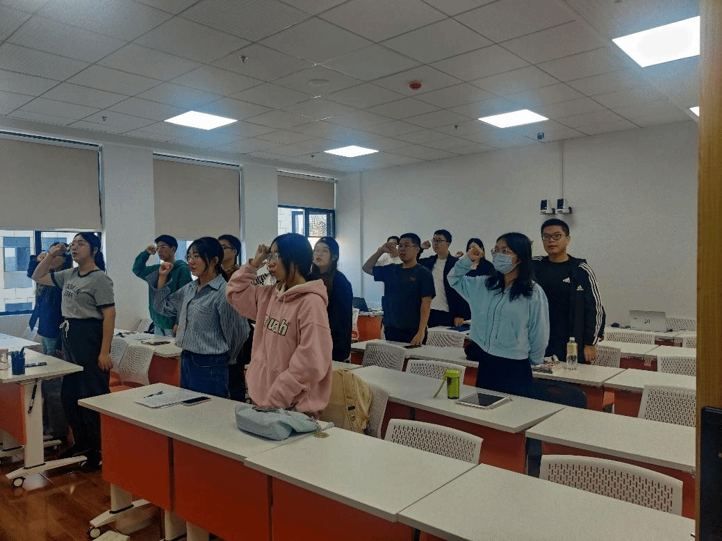 (图为国际政治系2022级硕士生党支部同志重温入党誓词 )