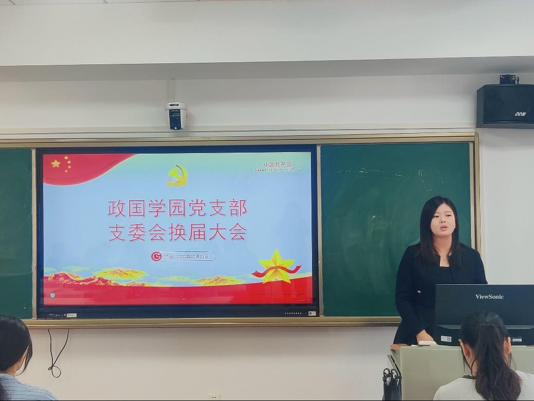 10月23日,政国学园党支部大会在文科科研楼801教室举行。本次支部大会共有三项议程:(一)开展十月主题党日活动。(二)召开2023年下半年党员发展民主评议。(三)组织支委会换届。本次活动由党支部常务副书记陈姝妤同志主持、第一党小组领学,政国学园党支部全体党员参与。