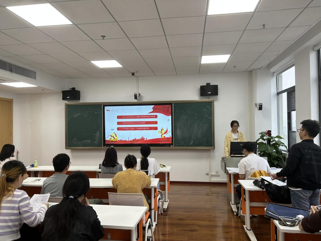 10月30日下午,政治与国际关系学院政治学系2022级硕士生党支部在9号楼9202教室开展10月主题党日活动。活动由党支部书记彭振雄主持,江华、刘华星、韩占伟三位党员同志带领学习,全体同学共同参与。