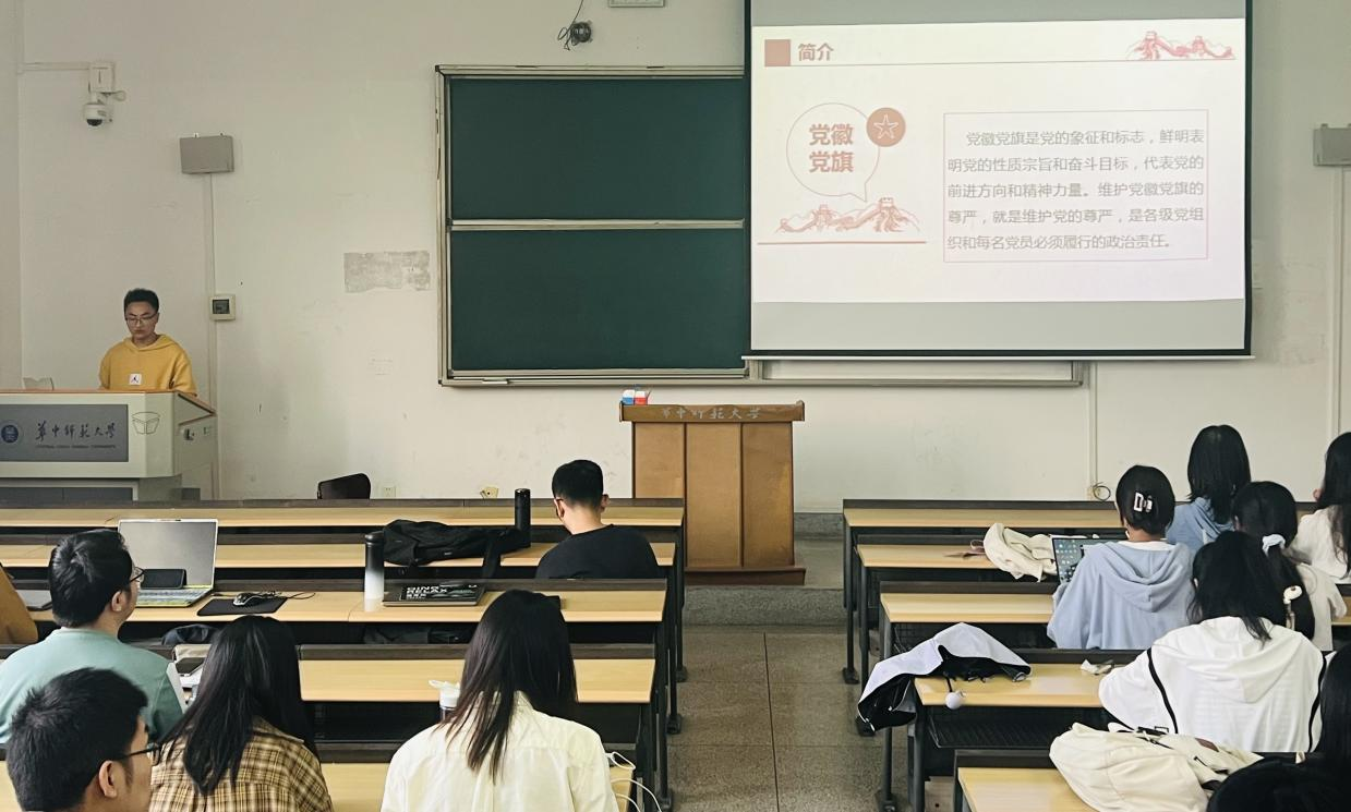 (图为董艺博同志领学《中国共产党党徽党旗条例》)