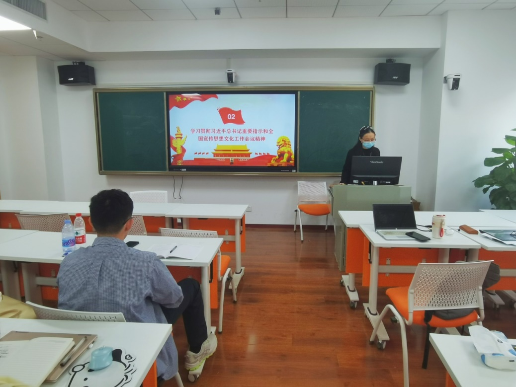 (图为陈威同志领学习近平总书记重要指示和全国宣传思想文化工作会议精神)