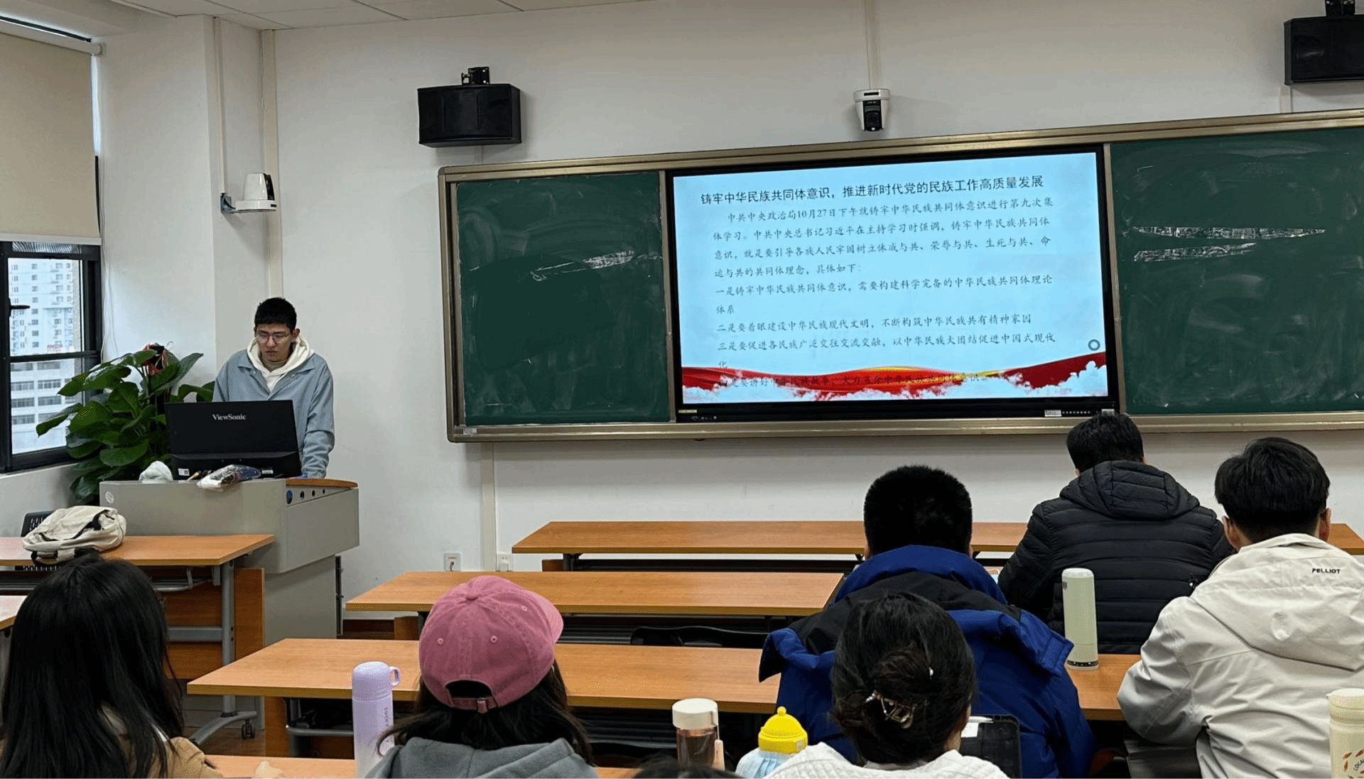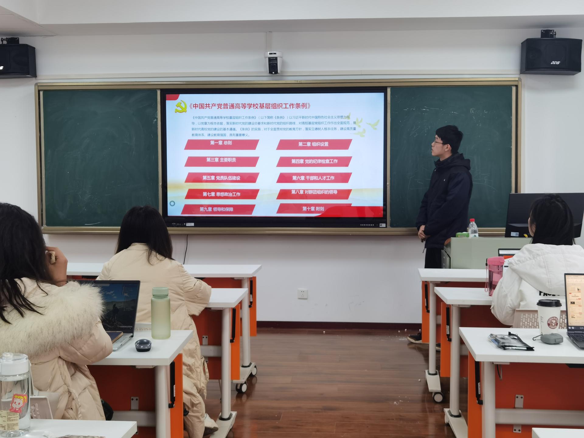 12月2日,政国学园党支部11月主题党日活动在文科科研楼801教室举行。本次活动由党支部组织委员王善达同志主持、第二党小组同学领学,政国学园党支部全体党员参与。
