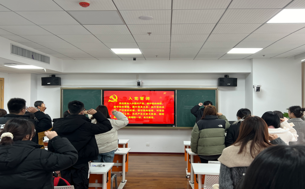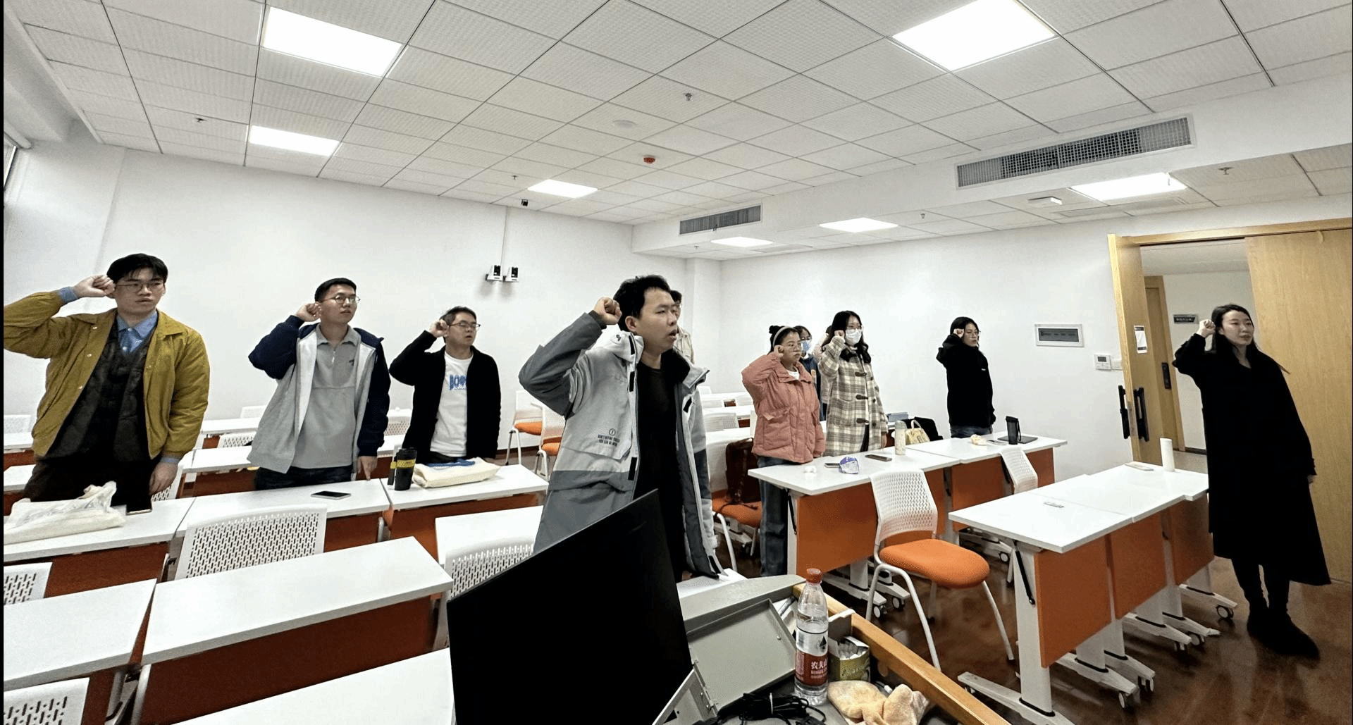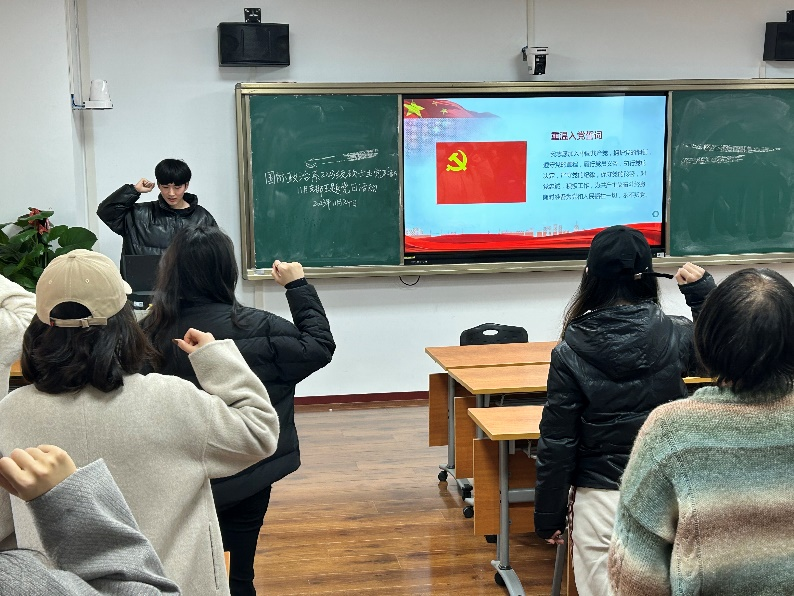 (图为国际政治系2023级硕士生党支部同志重温入党誓词)