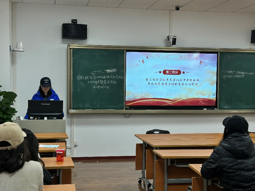 (图为国际政治系2021级硕士生党支部11月主题党日活动现场)