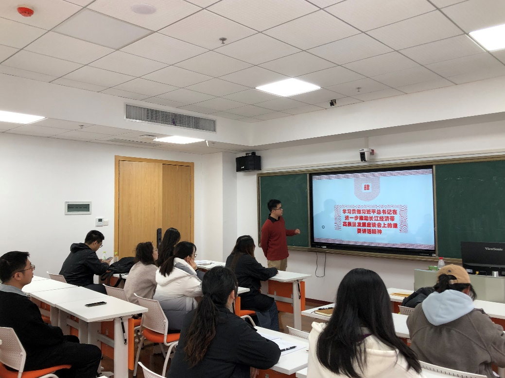 11月28日下午,政治与国际关系学院本科生党支部于文科科研楼803教室举行11月主题党日活动。本次活动由第二学习小组主持,游曾轲同志领学。活动中,支部全体成员学习领会了习近平总书记在中央政治局第九次集体学习时的重要讲话精神、习近平总书记在进一步推动长江经济带高质量发展座谈会上的重要讲话精神,贯彻落实《中国共产党普通高等学校基层组织工作条例》以及《干部教育培训工作条例》,深刻领会了其具体内容、时代背景和重大意义。