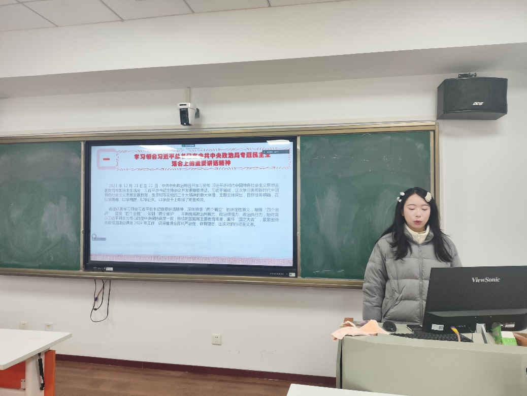 1月17日下午,我院本科生党支部于文科科研楼802教室举行1月主题党日活动。本次活动由第一学习小组主持,苏豪同志领学,支部全体党员参与。