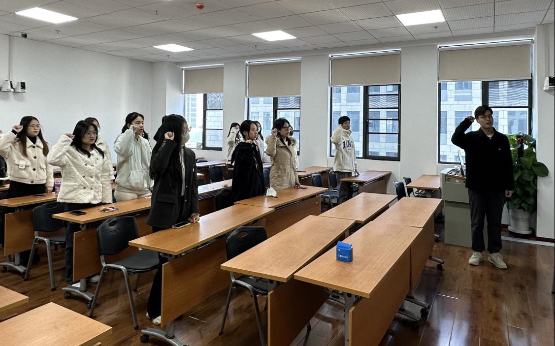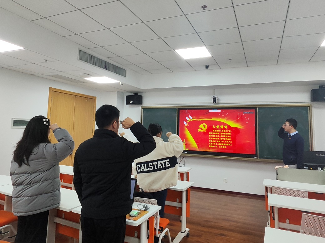 (图为政治学系2023级硕士研究生党支部同志重温入党誓词)