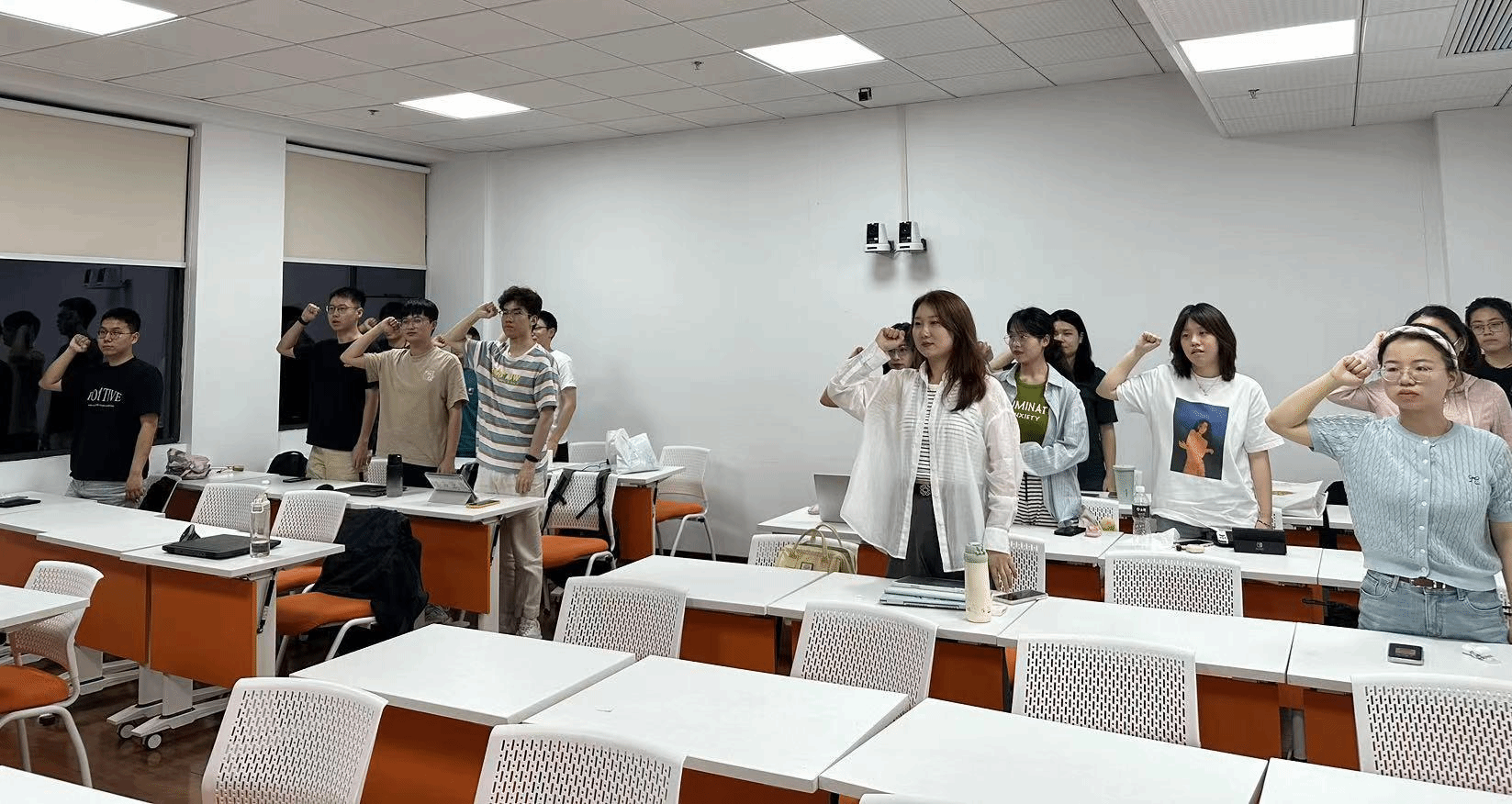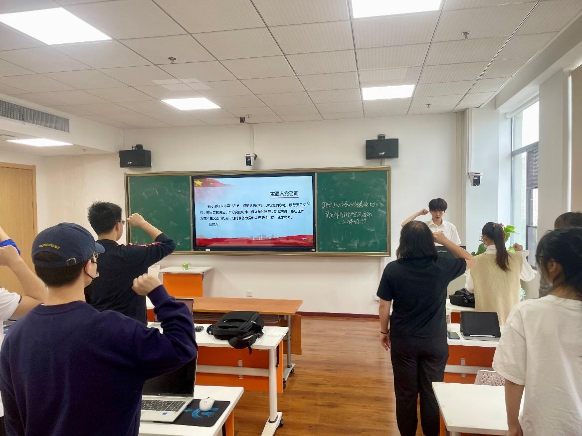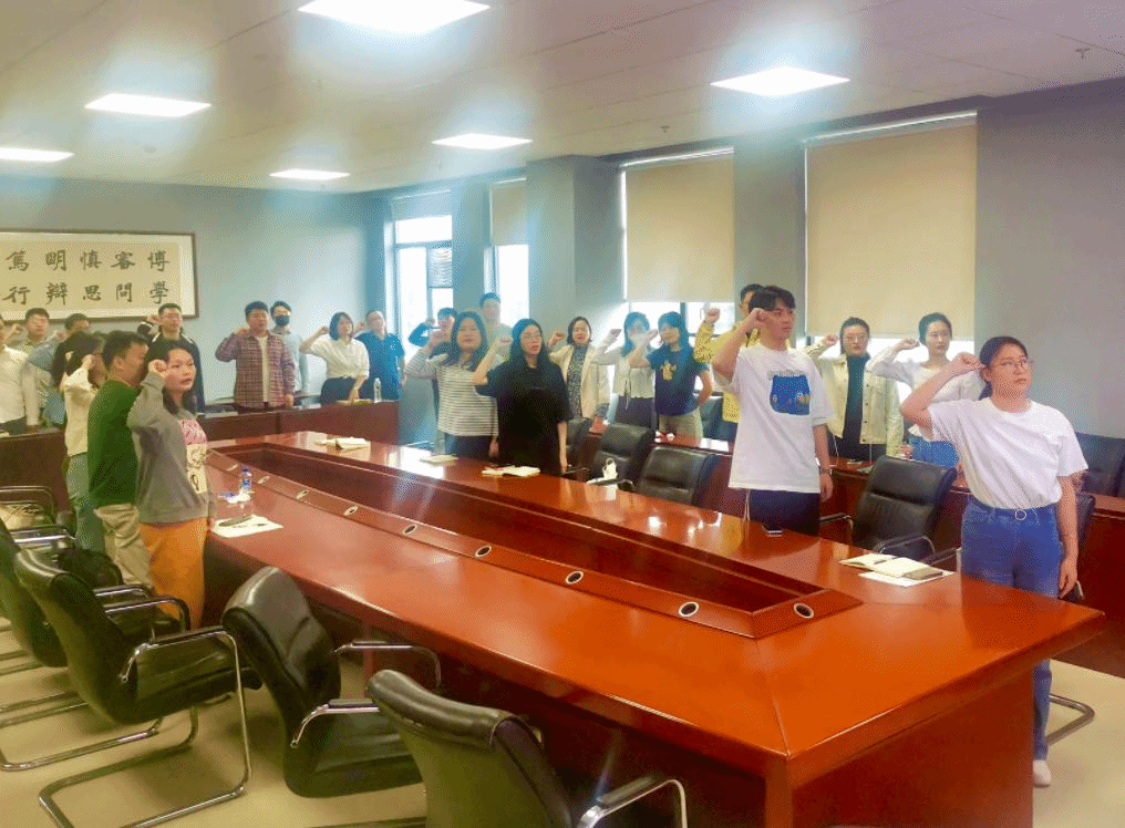 (图为政治学系2022级硕士生党支部同志重温入党誓词)