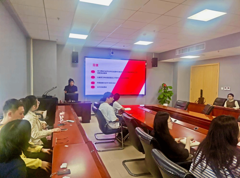 活动第一项,由门永怡同志分享“学习领会习近平总书记在新时代推动中部地区崛起座谈会上的重要讲话精神”学习内容。活动第二项,由谢婧同志带领支部成员深入学习领会“学习中央党的建设工作领导小组会议精神”。谢婧同志分享了会议的三点主要内容:第一,要进一步深化对加强党的纪律建设重要性和忽视党纪、违反党纪问题危害性的认识。第二,要抓住学习重点,在学习贯彻《中国共产党纪律处分条例》上下功夫见成效。第三,要压实各级党组织的领导责任,各级领导班子和党员领导干部带头学习,推动党员干部高质量完成党纪学习教育任务。活动第三项,由曾智林同志带领开展国家安全学习教育活动。曾智林同志领学了坚持总体国家安全观,为强国建设民族复兴提供国家安全坚强保障以及铸牢中华民族共同体意识等内容。