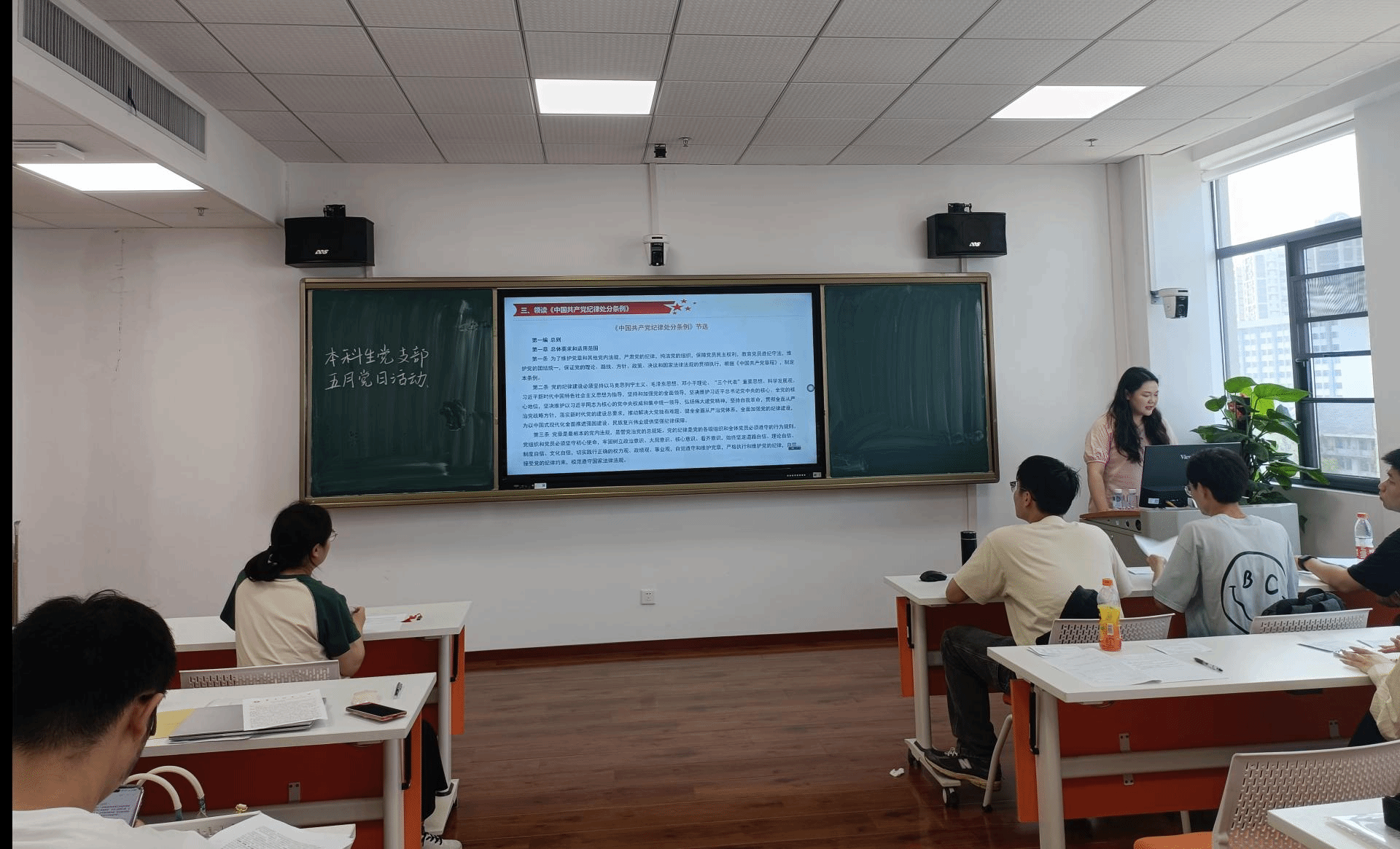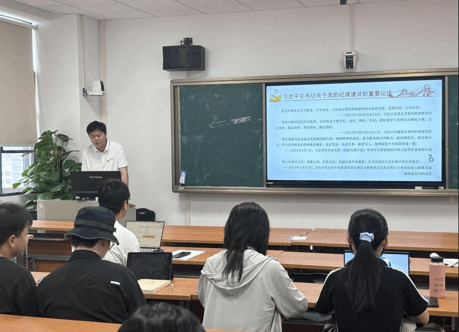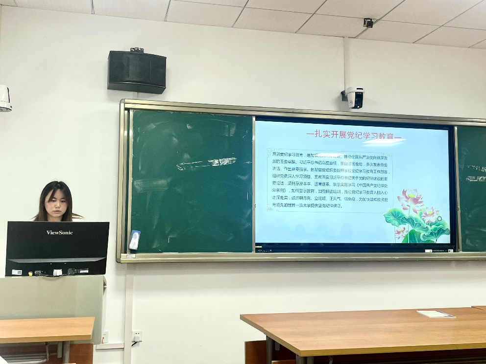 5月29日,我院国际政治系2022级硕士生党支部于文科科研楼801教室开展以“筑牢纪律基石,严守纪律底线”为主题的5月主题党日活动,活动由支部书记卜小丫同志主持,党支部全体成员出席,纪检委员朱曼烨进行考勤记录。