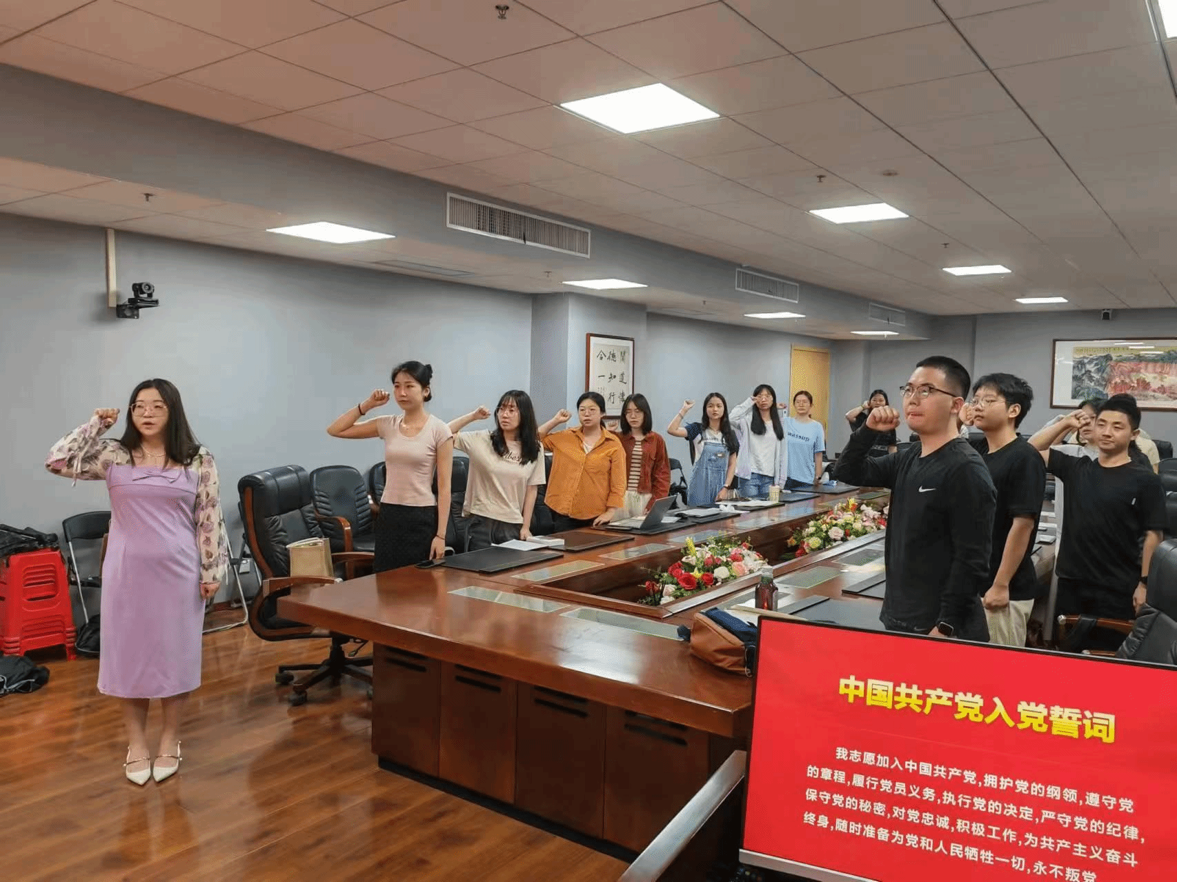 (图为政治学系2022级硕士生党支部同志重温入党誓词)
