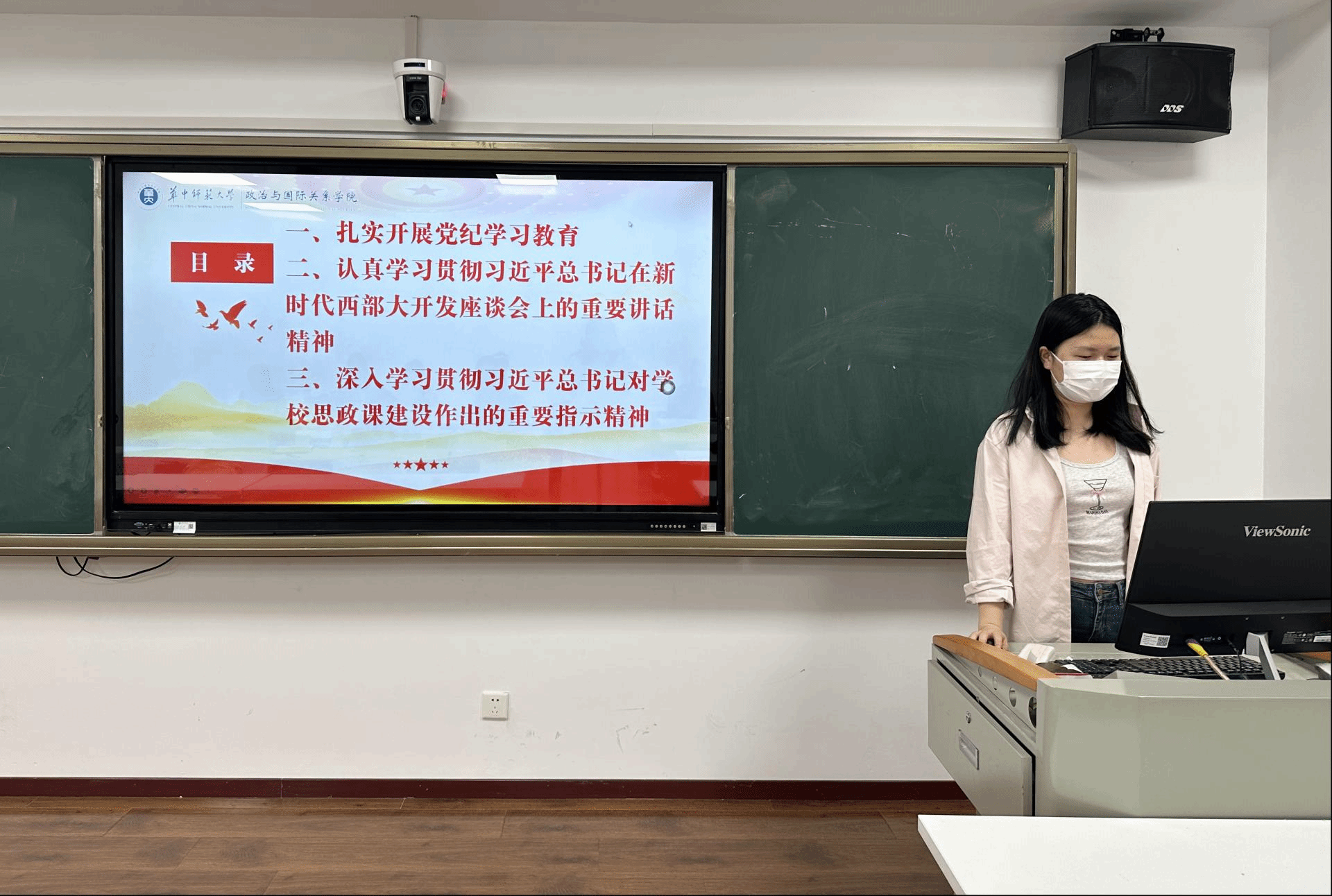5月28日,我院政治学系2022级硕士生党支部于文科科研楼801教室举行5月主题党日活动。活动由党支部书记彭振雄主持,彭振雄、毕佳奇、杨晓丽三位党员同志带领学习,全体党员与会学习。