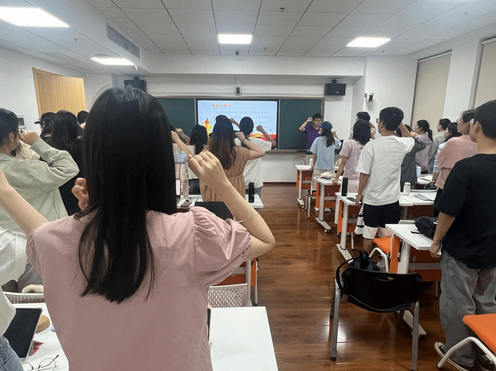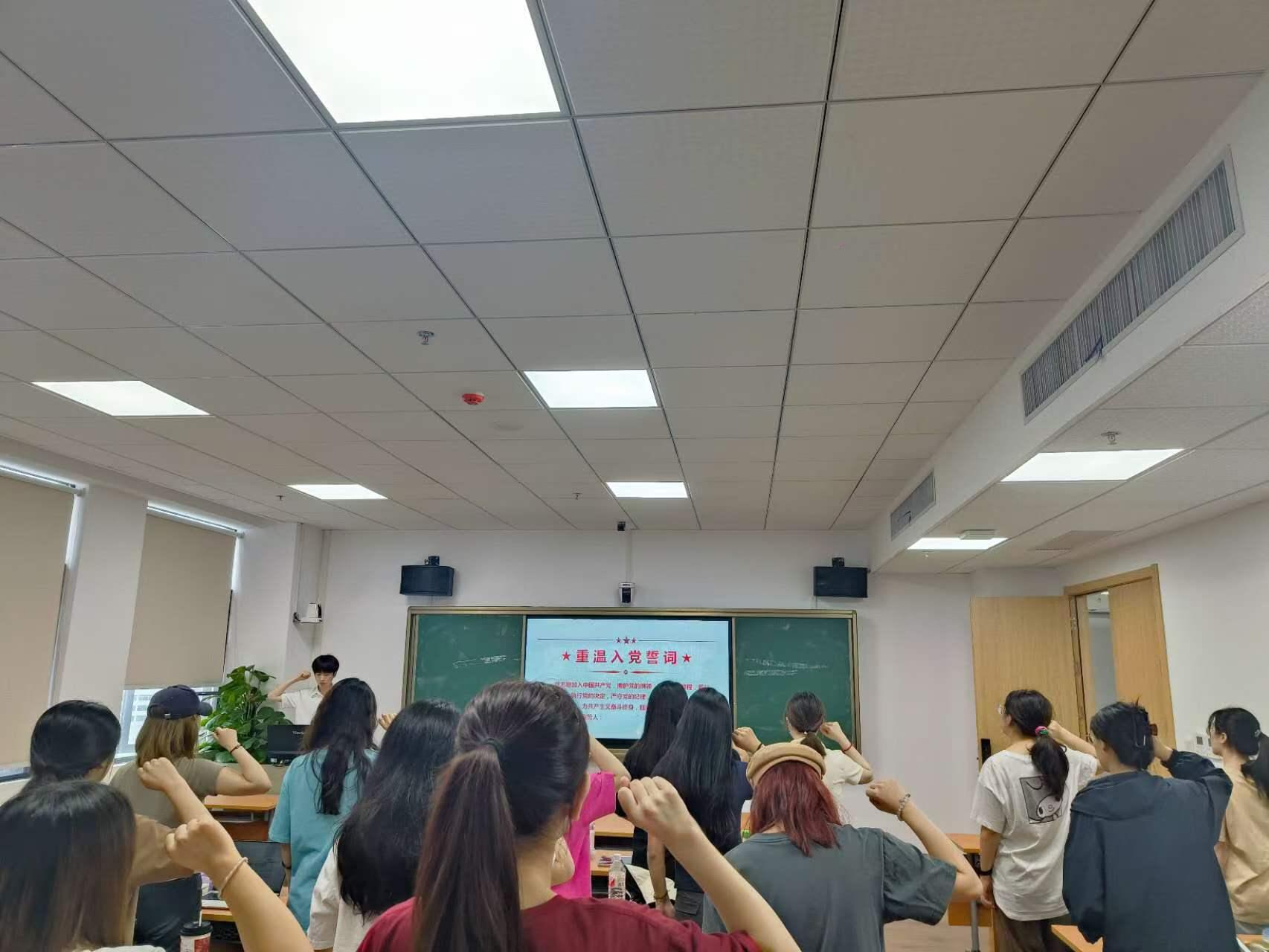 (图为国际政治系2021级党支部与会党员重温入党誓词)