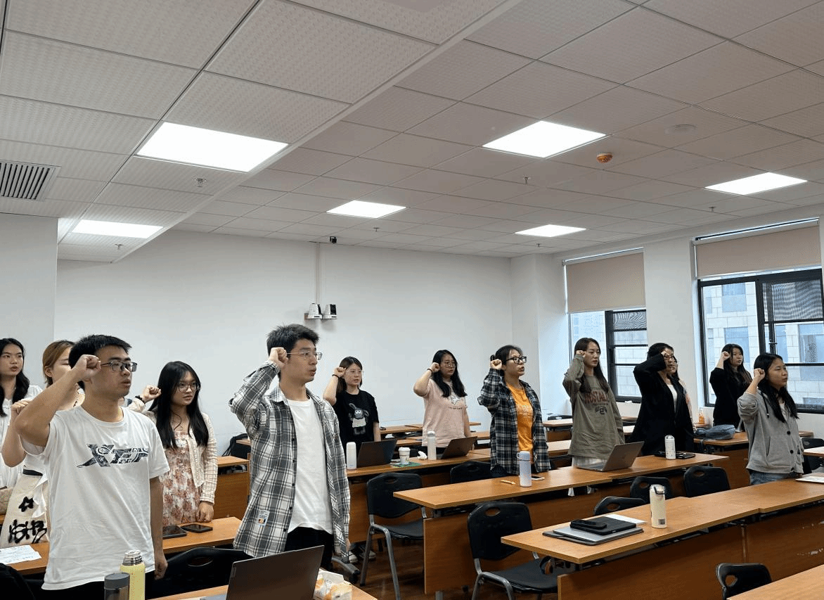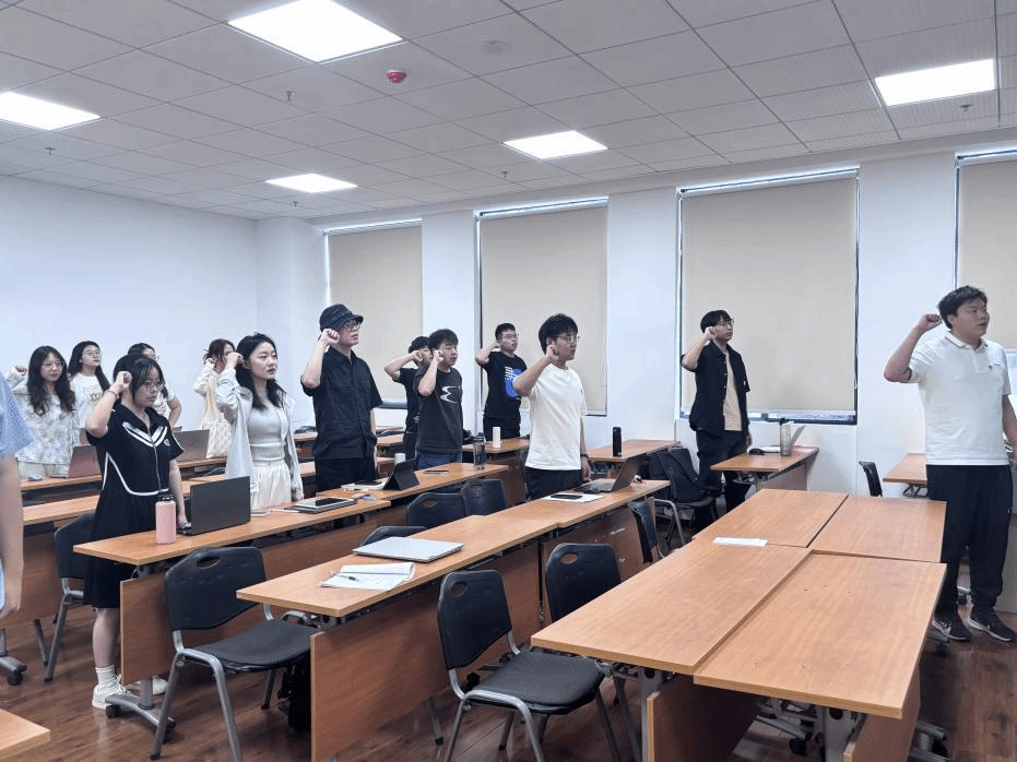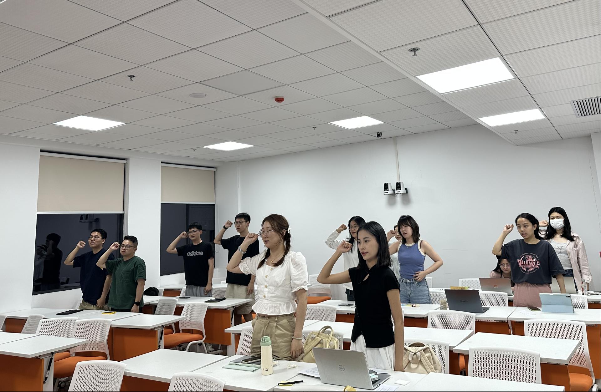 (图为政治学系2023级硕士生党支部同志重温入党誓词)