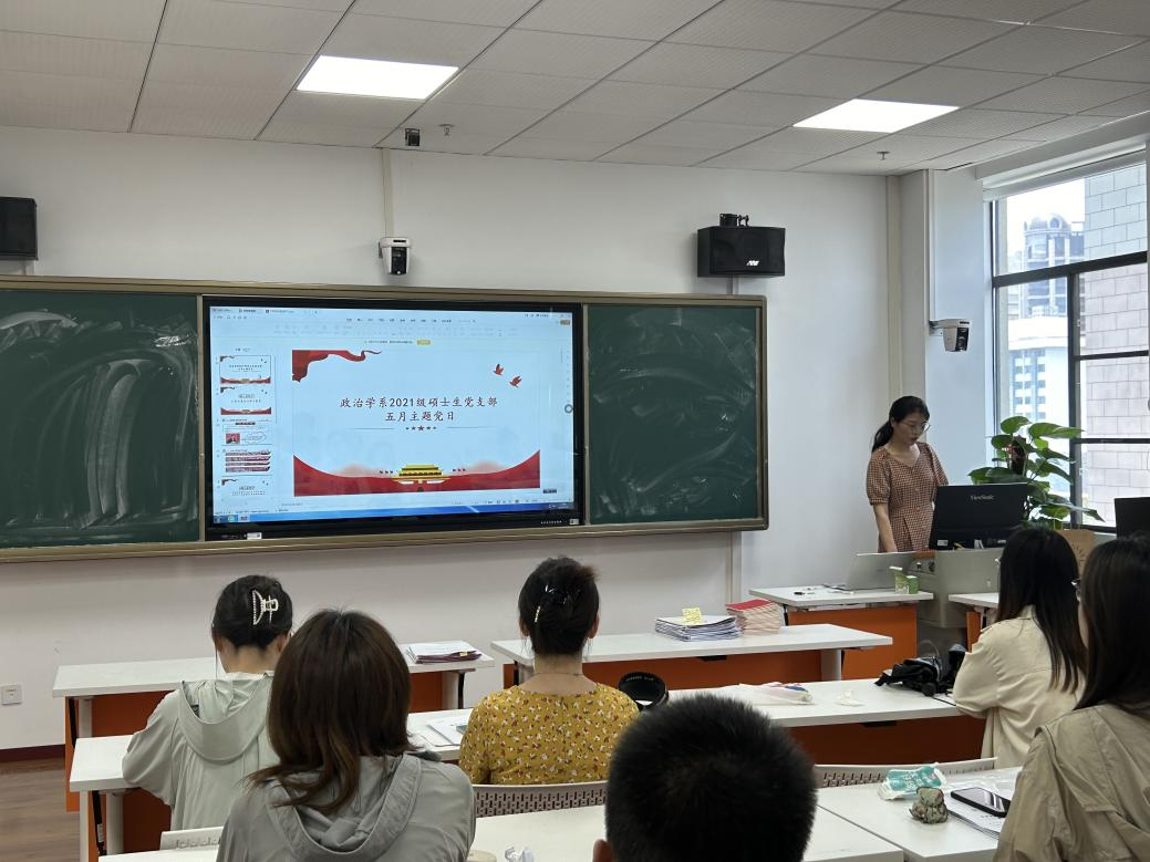 5月24日晚上,我院政治学系2021级硕士生党支部在文科科研楼801教室召开5月主题党日活动。本次活动由金杰同志主持,支部全体党员同志与会学习。