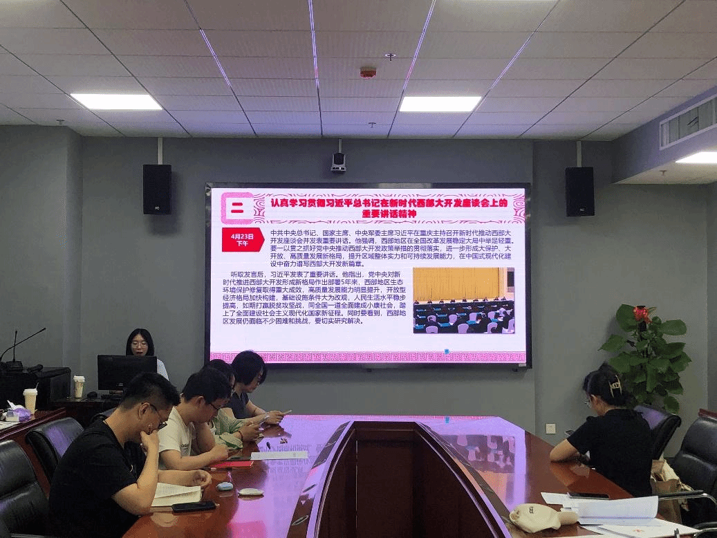 会议第一项,党支部全体成员集体重温入党誓词。会议第二项,彭振雄同志带领全体同志开展党纪学习教育。近年来,党中央高度重视党的纪律建设,习近平总书记多次强调纪律建设的重要性,并亲自部署和推动党纪学习教育工作,以此来增强党员干部的纪律意识和廉洁自律能力。会议第三项,毕佳奇同志带领全体党员认真学习贯彻习近平总书记在新时代西部大开发座谈会上的重要讲话精神。习近平总书记强调,西部地区在全国改革发展稳定大局中举足轻重。要一以贯之抓好党中央推动西部大开发政策举措的贯彻落实,进一步形成大保护、大开放、高质量发展新格局,提升区域整体实力和可持续发展能力。会议第四项,杨晓丽同志带领全体同志深入学习贯彻习近平总书记对学校思政课建设作出的重要指示精神。思政课是落实立德树人根本任务的关键课程,是铸魂育人的主渠道,承担着培养时代新人、传播和践行社会主义核心价值观的重要使命。