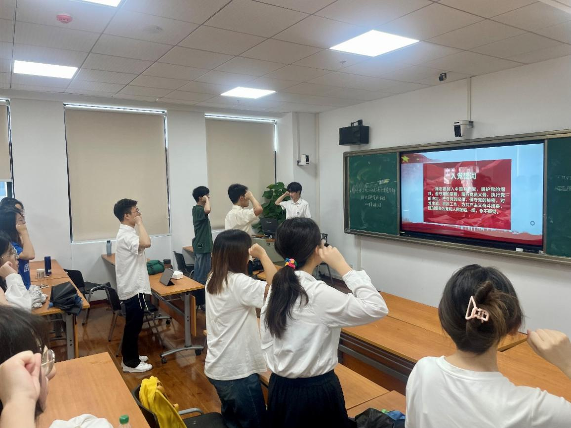 活动第一项,全体成员交纳党费,重温入党誓词。活动第二项,杨宇迪同志深入带领大家解读《中国共产党纪律处分条例》。他强调了学习《条例》的重要性和紧迫性,详细讲解了其历次修订,特别是最新修订中的四大亮点,深化警示教育,引导全体党员和入党积极分子知敬畏、存戒惧、守廉洁、担使命。活动第三项,徐骏同学带领大家学习习近平总书记在中共中央政治局第十四次集体学习时的重要讲话精神。习近平总书记在讲话中提到,促进高质量充分就业,是新时代新征程就业工作的新定位、新使命。要加快建构中国就业理论体系,有效提升我国在就业领域的国际话语权和影响力。活动第四项,支部成员共同学习习近平总书记重要文章《开创我国高质量发展新局面》。第三小组的同学分享到:“领导干部要树牢造福人民的政绩观。要坚持以人民为中心的发展思想,坚持高质量发展。”支部成员汪庆学习后,认识到高质量发展是我国经济发展的根本要求,是新时代我国经济发展的基本特征。党员同志要深刻理解高质量发展的内涵和要求,以更加饱满的热情和更加扎实的作风,为推动高质量发展贡献力量。