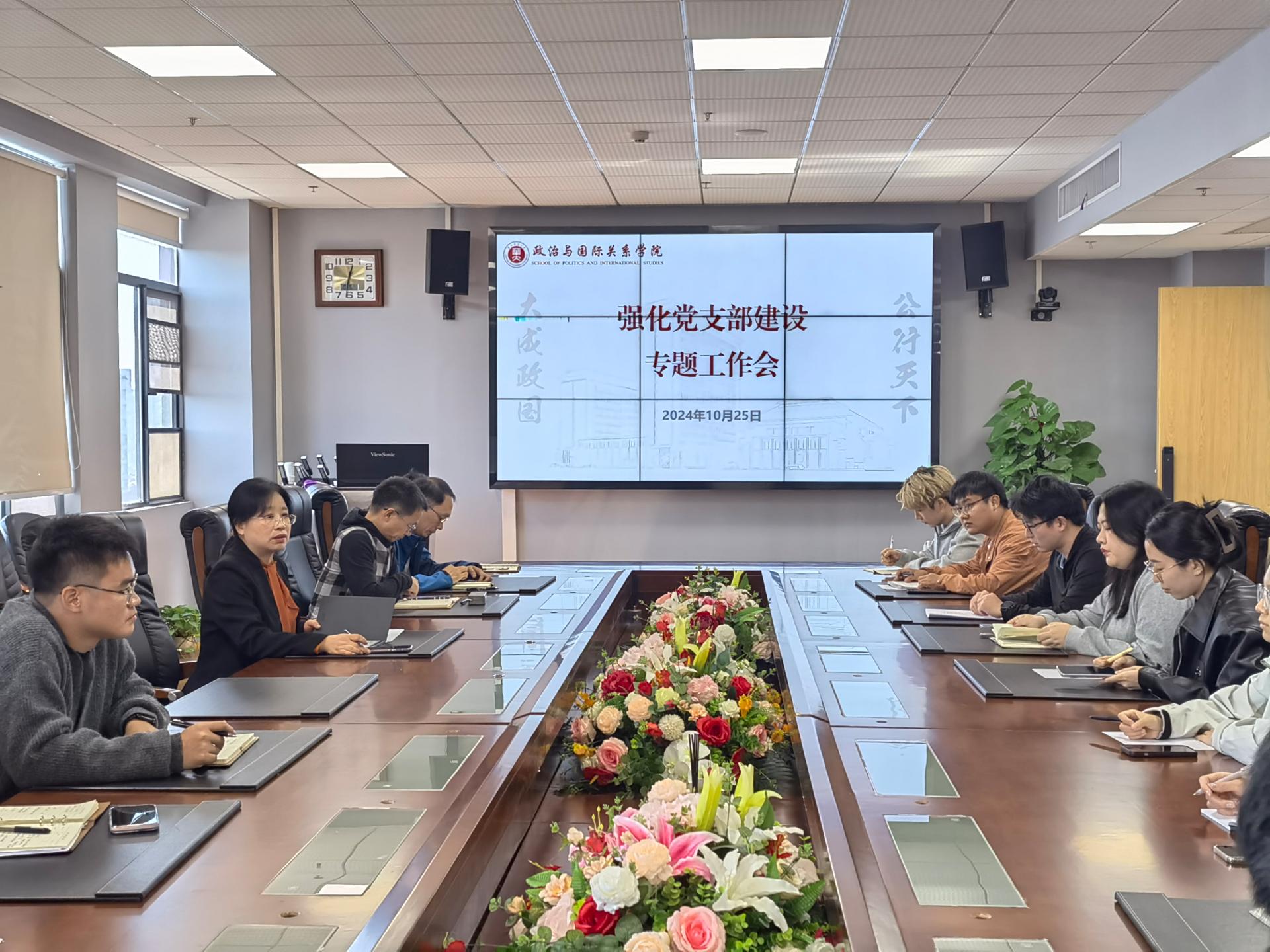 10月25日,政治与国际关系学院党支部建设专题工作会在院1005会议室召开,会议由院分党委书记闫丽莉主持,全体师生党支部书记参会。