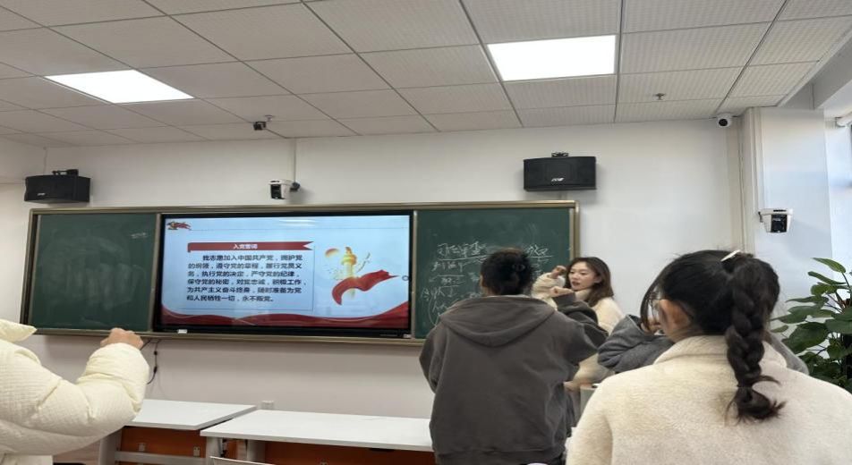 12月17日,科社所2023级硕士生党支部于文科科研楼南楼802教室开展了12月主题党日活动。本次党日活动由党支部书记宋婉约主持,侯江江同志领讲,科社所2023级硕士生党支部全体党员、发展对象和入党积极分子共同参加。本次主题党日活动共有三项议程:一、全体党员重温入党誓词;二、全体党员学习党章;三、侯江江同志领学本月党日活动。