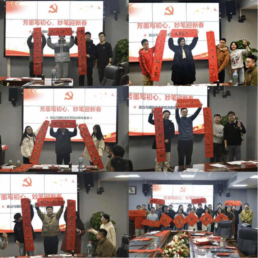 值此辞旧迎新之际,支部特开展“芳墨写初心,妙笔迎新春”主题活动,分小组题写“红色”对联,追忆初心、感悟使命。支部成员们利用奇思巧智,将“高”“原”“党”“支”“部”五字化用在对联之中,心意满满。大家手拿毛笔、挥洒自如,纸面上翰墨飘香,一幅幅春联在行云流水般的笔触中跃然而出,字里行间洋溢着喜悦与美好的祝福。随着淡淡墨香弥散在空气中,一笔一划,支部党员们写下的是对支部发展的祝愿、寄托的是对美好未来的畅想、承载的是对家国兴盛的期盼。
